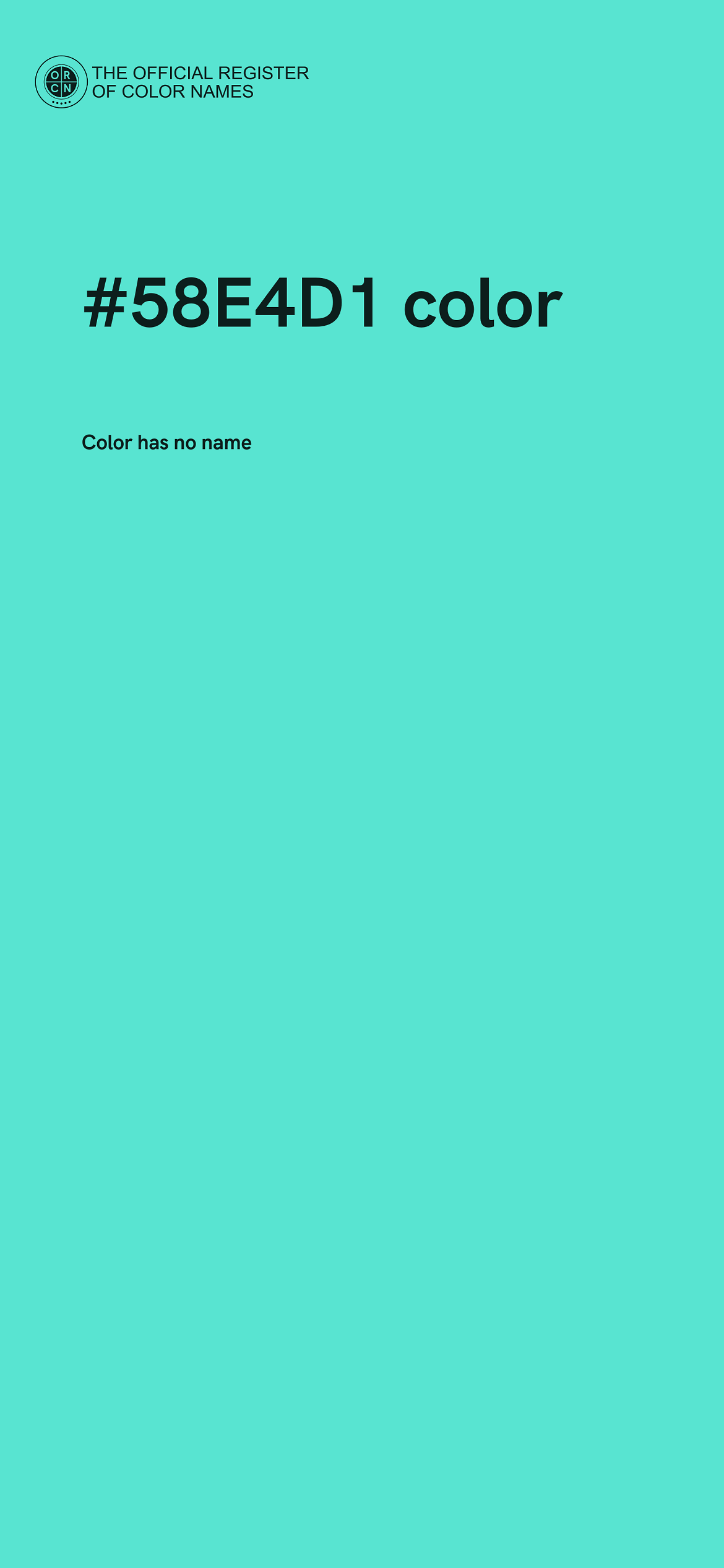 The digital color HEX #58E4D1 belongs to the Cyan Color Family featuring High Saturation (Saturation Family) and Very Light (Brightness Family).