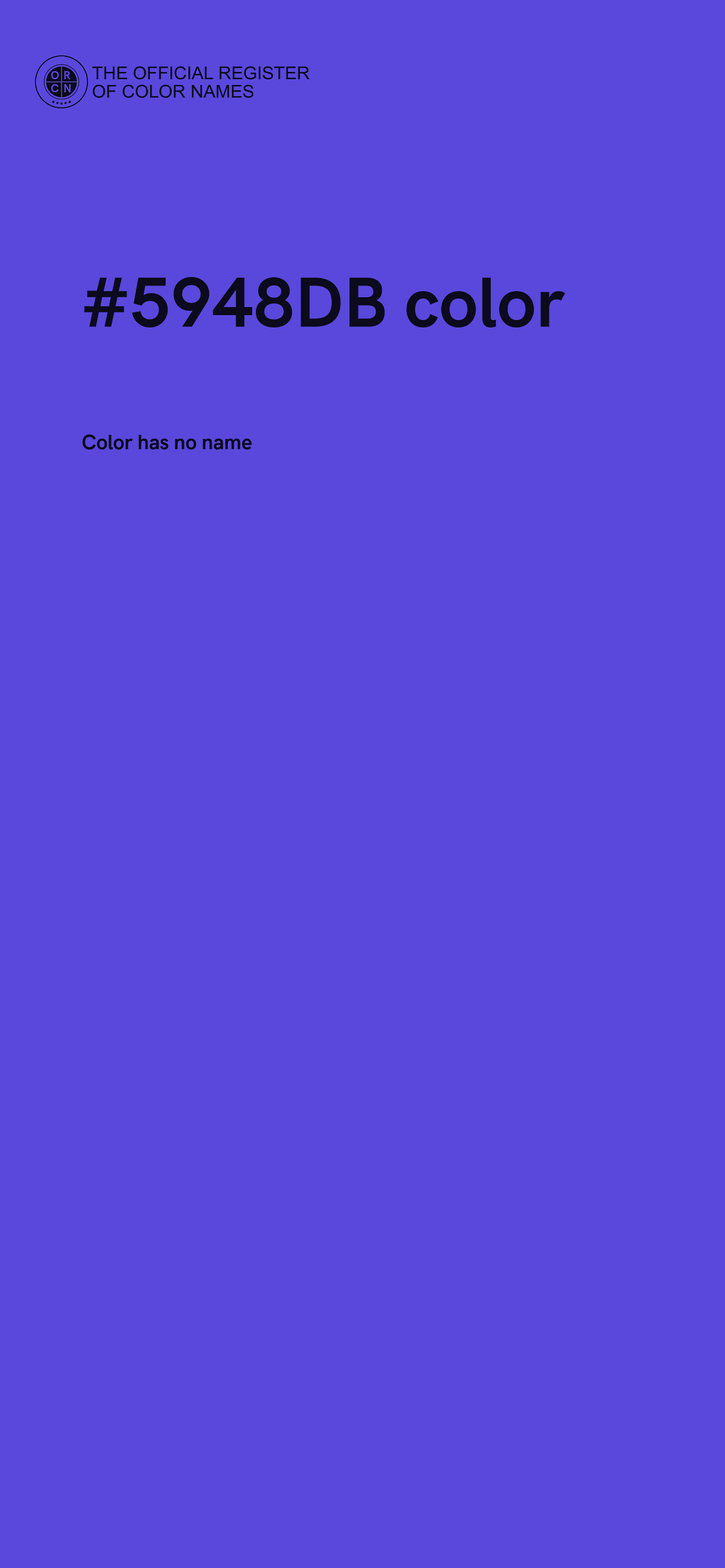 The digital color HEX #5948DB belongs to the Blue Color Family featuring High Saturation (Saturation Family) and Light (Brightness Family).