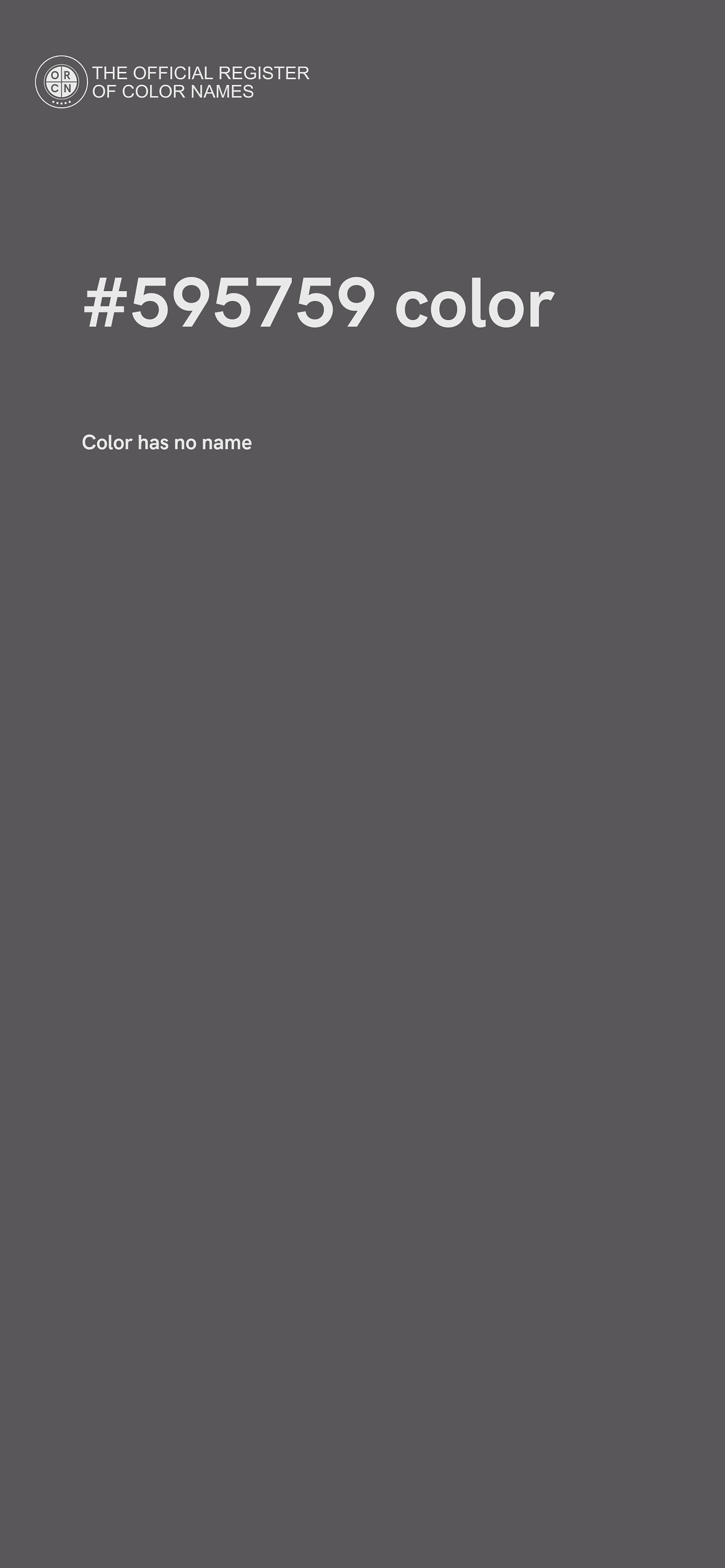 For printing in non digital world, #595759 is represented in CMYK as 0 Cyan, 1 Magenta, 0 Yellow, and 65 Black (Key) (C:0 M:1 Y:0 K:65).