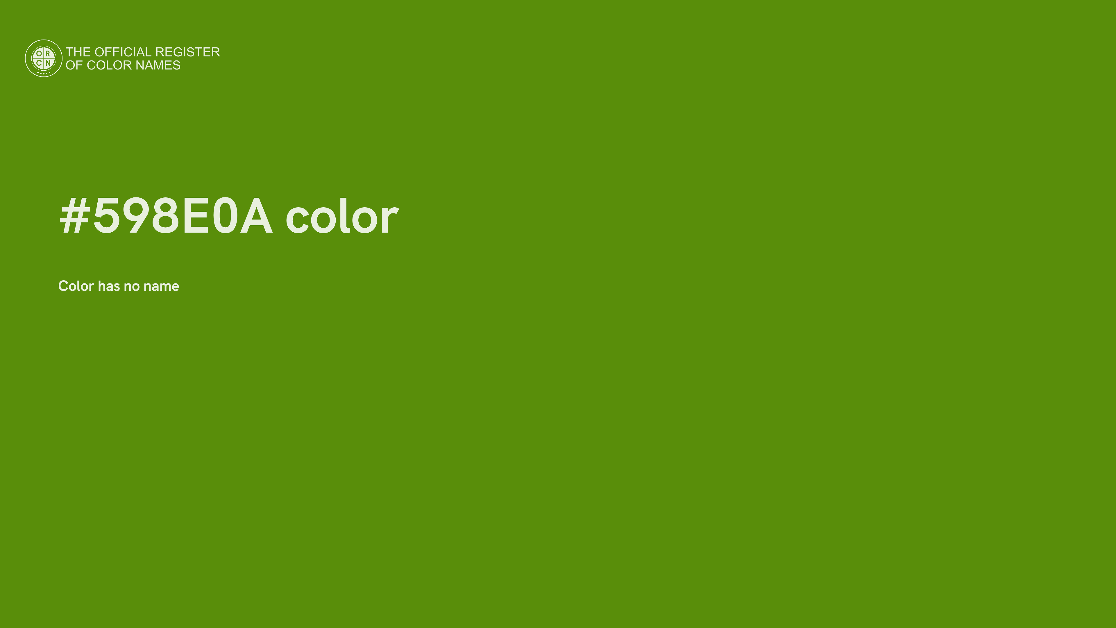 The digital color HEX #598E0A belongs to the Chartreuse Color Family featuring Full Saturation (Saturation Family) and Neutral (Brightness Family).