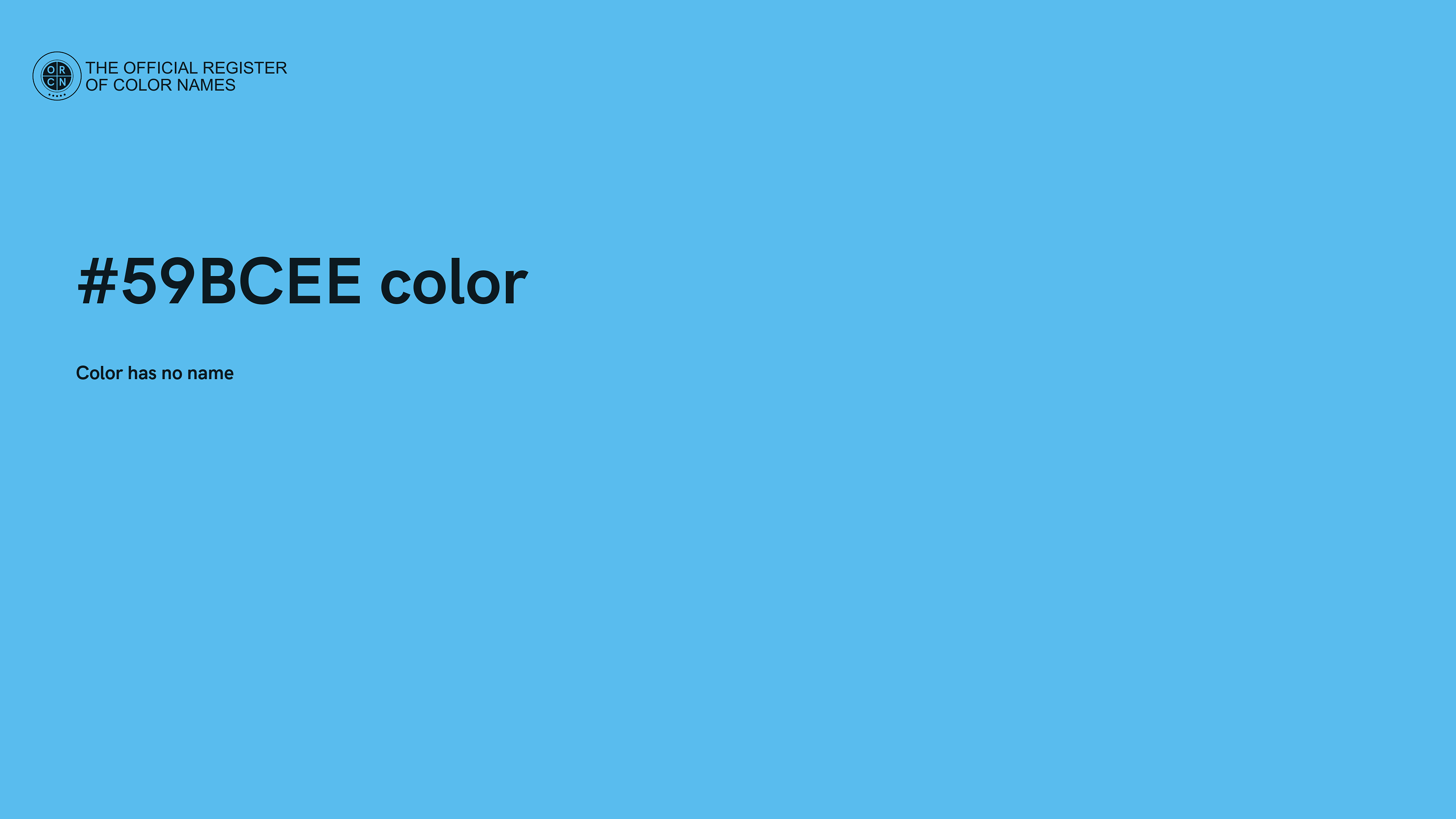 The digital color HEX #59BCEE belongs to the Azure Color Family featuring High Saturation (Saturation Family) and Very Light (Brightness Family).