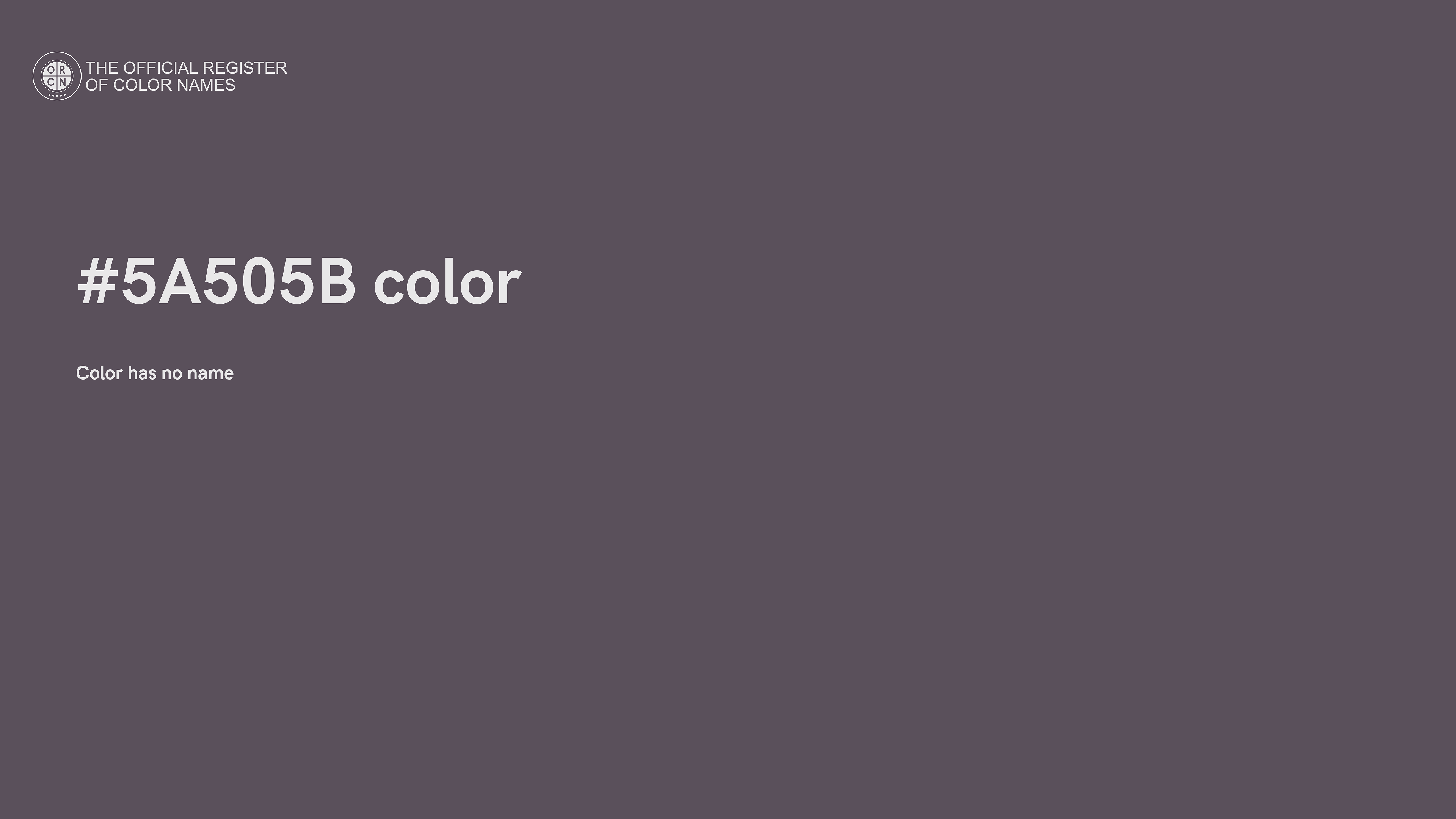 The digital color HEX #5A505B belongs to the Magenta Color Family featuring Desaturated (Saturation Family) and Neutral (Brightness Family).