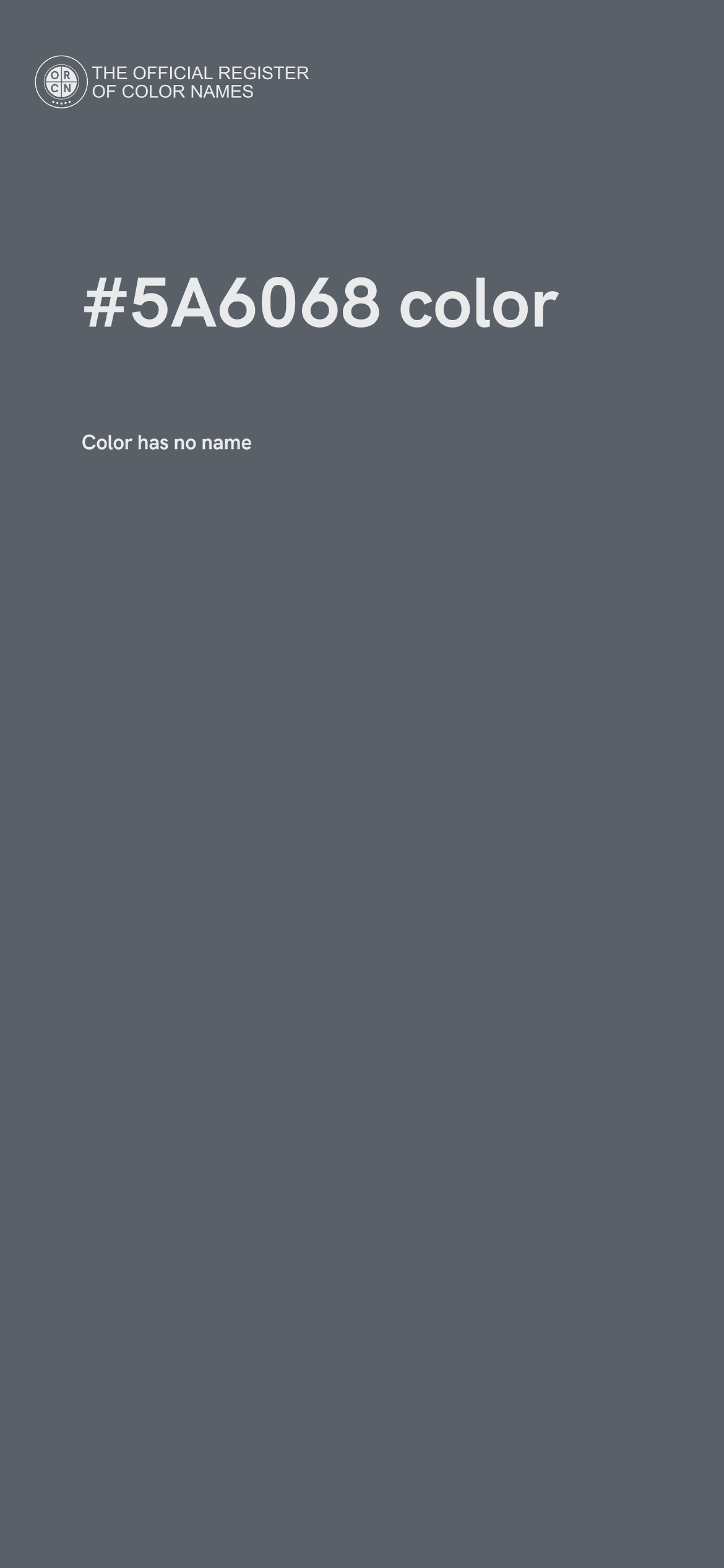 For printing in non digital world, #5A6068 is represented in CMYK as 5 Cyan, 3 Magenta, 0 Yellow, and 59 Black (Key) (C:5 M:3 Y:0 K:59).