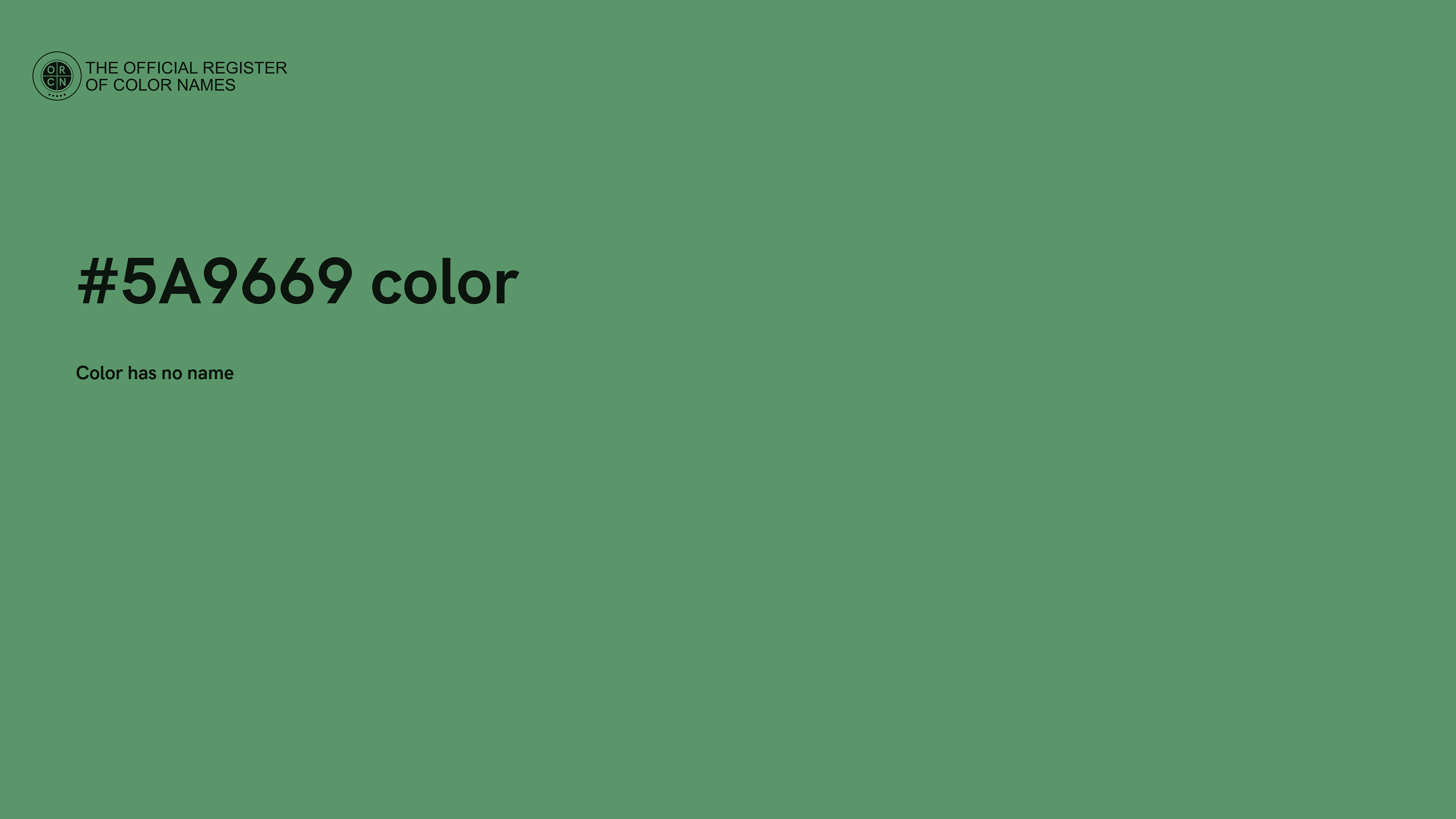 The digital color HEX #5A9669 belongs to the Spring Green Color Family featuring Mild Saturation (Saturation Family) and Light (Brightness Family).
