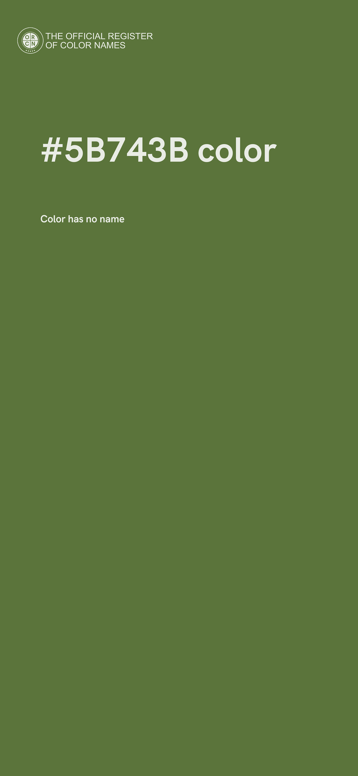 The digital color HEX #5B743B belongs to the Chartreuse Color Family featuring Mild Saturation (Saturation Family) and Neutral (Brightness Family).