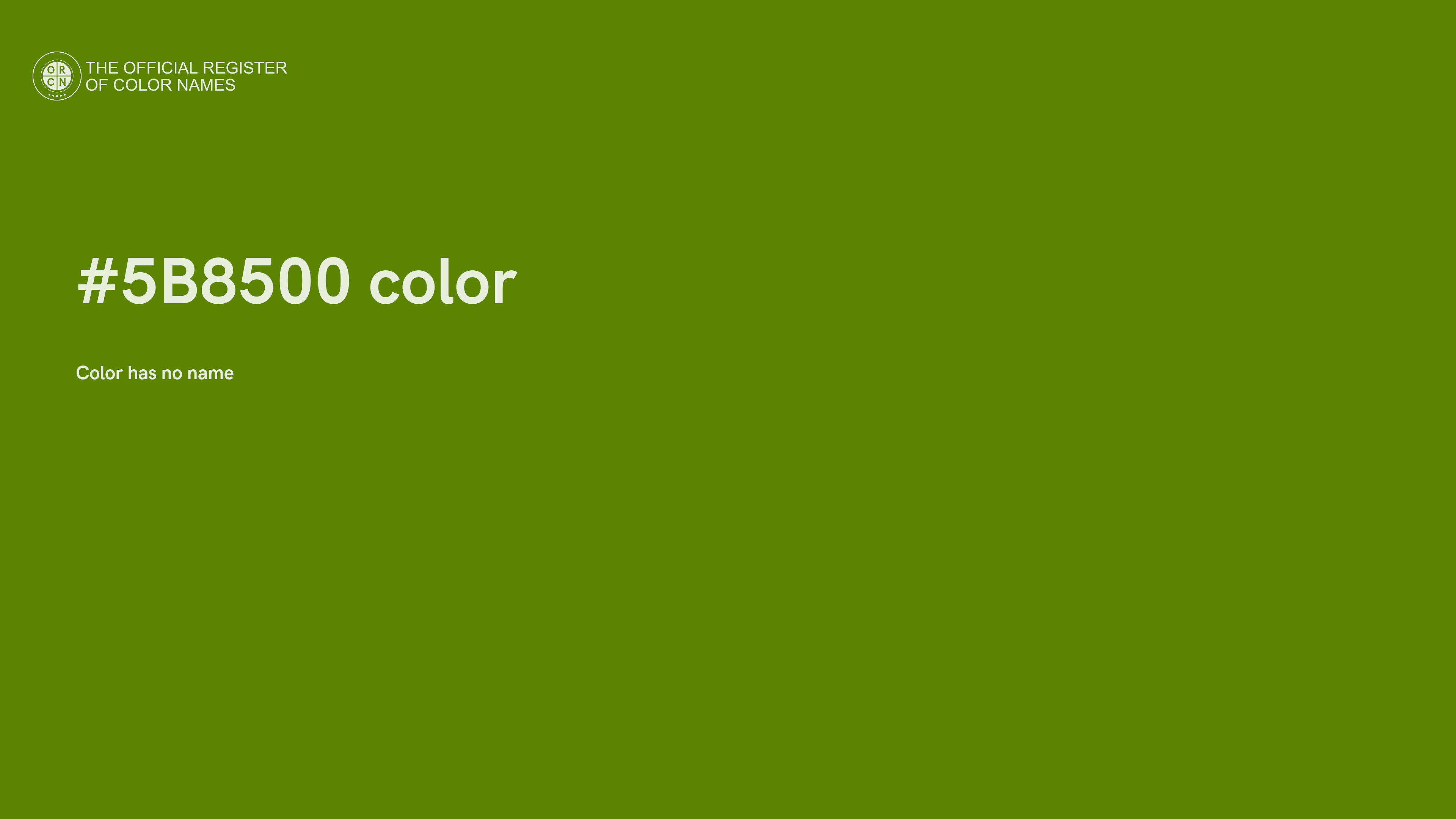 The digital color HEX #5B8500 belongs to the Chartreuse Color Family featuring Full Saturation (Saturation Family) and Neutral (Brightness Family).