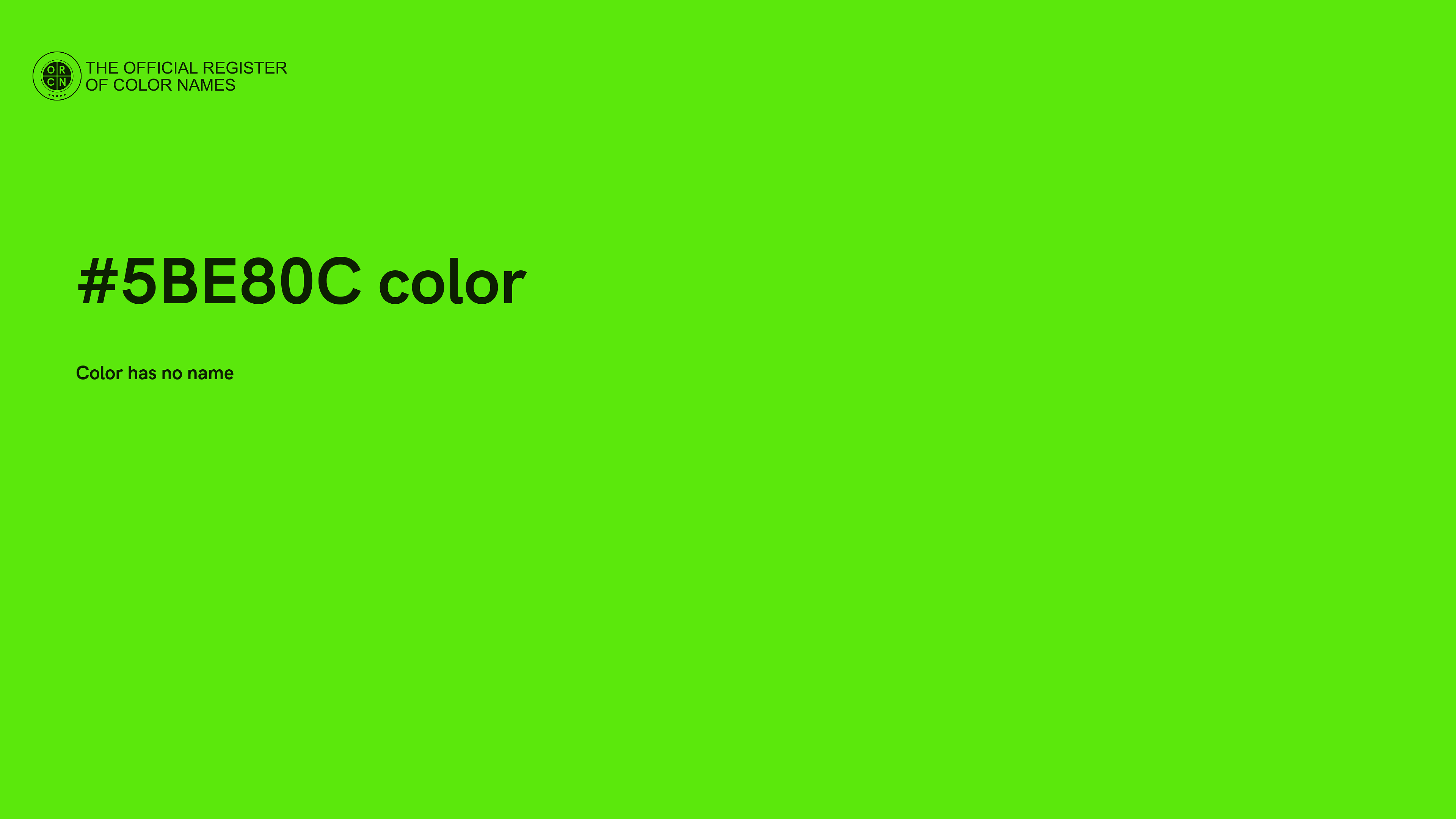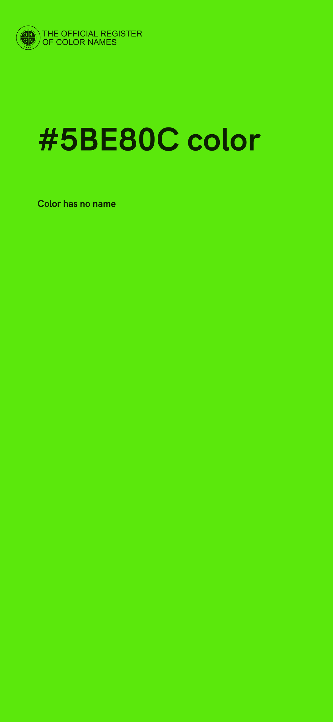 For printing in non digital world, #5BE80C is represented in CMYK as 55 Cyan, 0 Magenta, 86 Yellow, and 9 Black (Key) (C:55 M:0 Y:86 K:9).