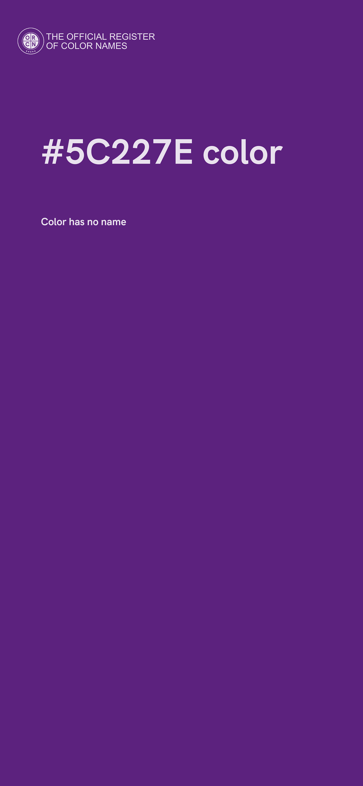 The digital color HEX #5C227E belongs to the Violet Color Family featuring Moderate Saturation (Saturation Family) and Neutral (Brightness Family).