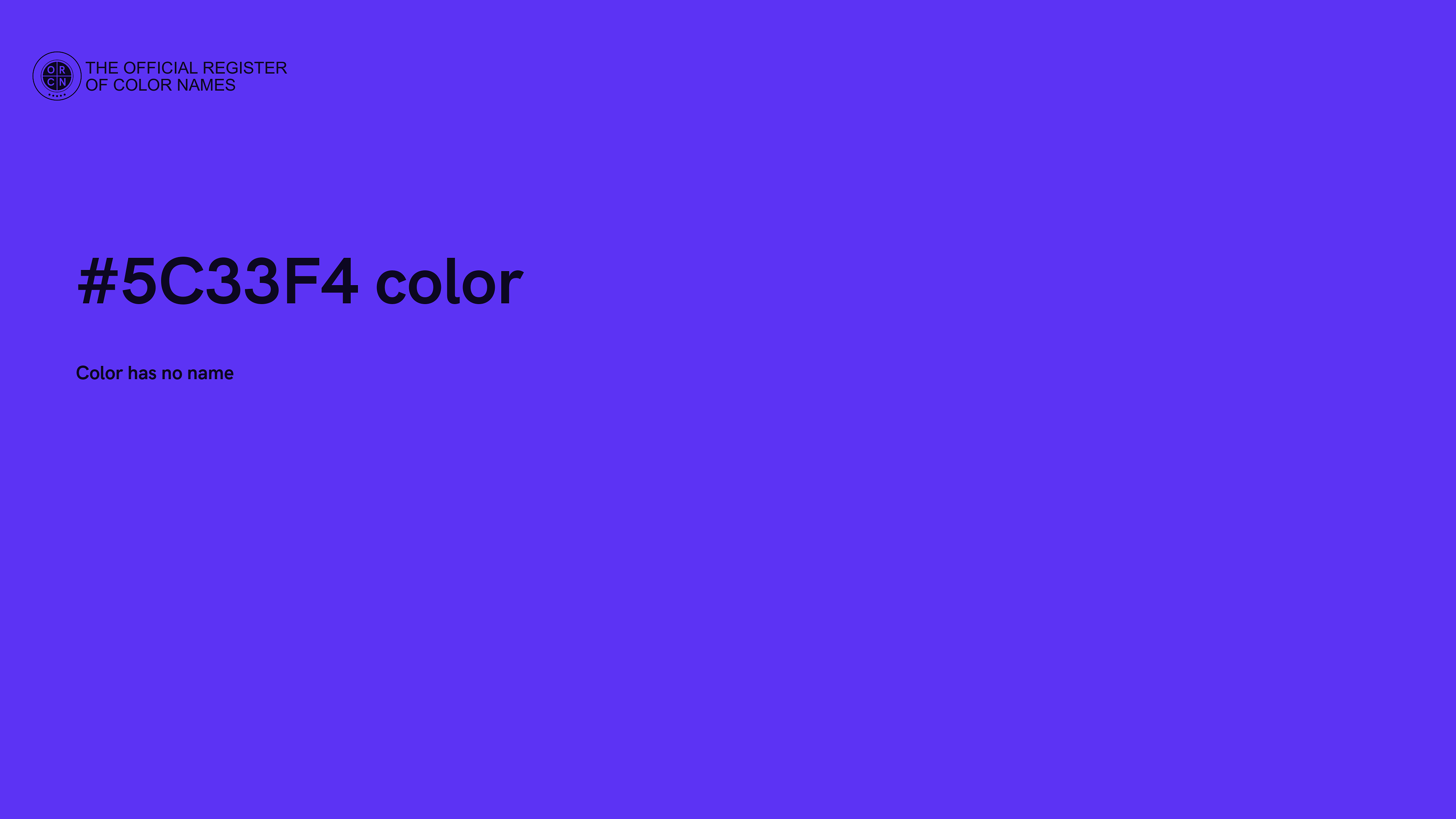 For printing in non digital world, #5C33F4 is represented in CMYK as 60 Cyan, 76 Magenta, 0 Yellow, and 4 Black (Key) (C:60 M:76 Y:0 K:4).