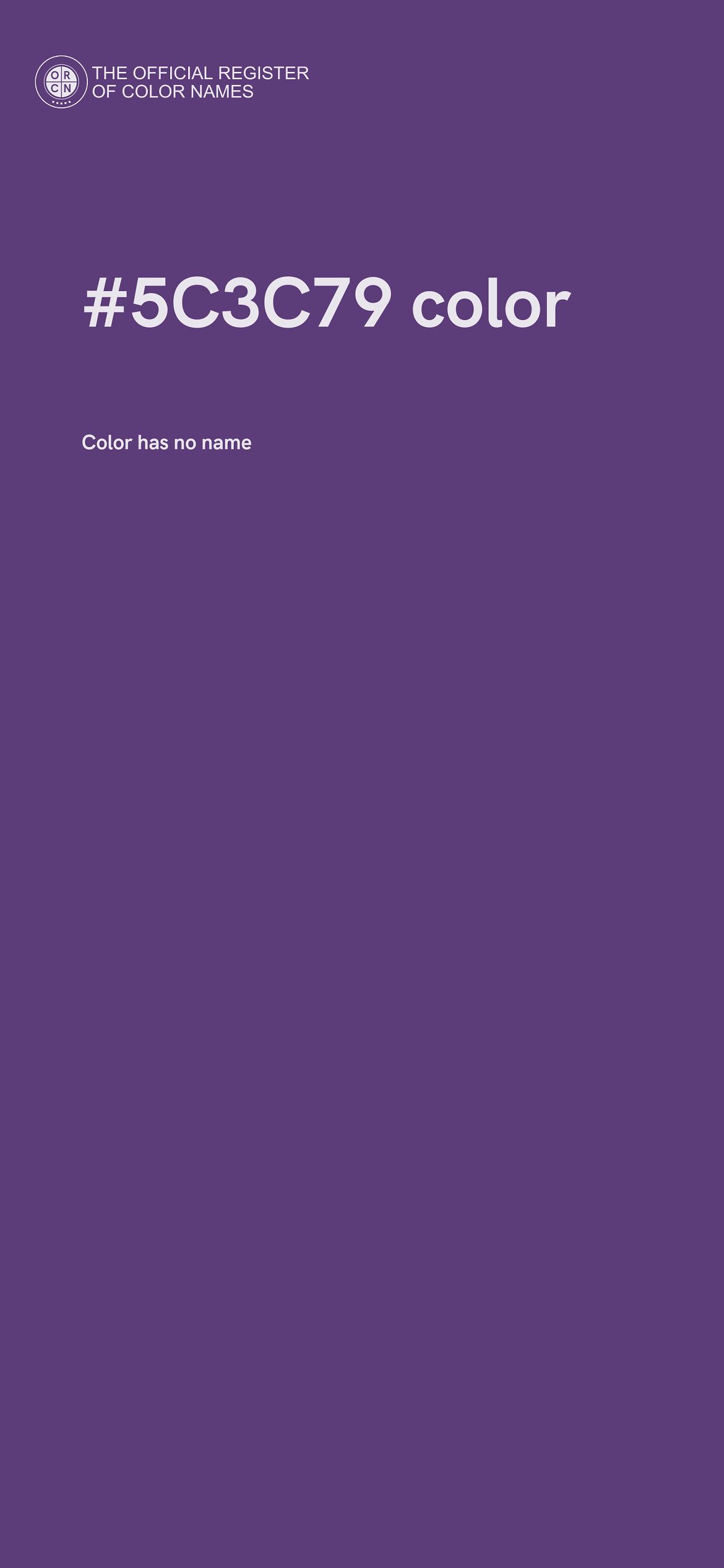 The digital color HEX #5C3C79 belongs to the Violet Color Family featuring Mild Saturation (Saturation Family) and Neutral (Brightness Family).