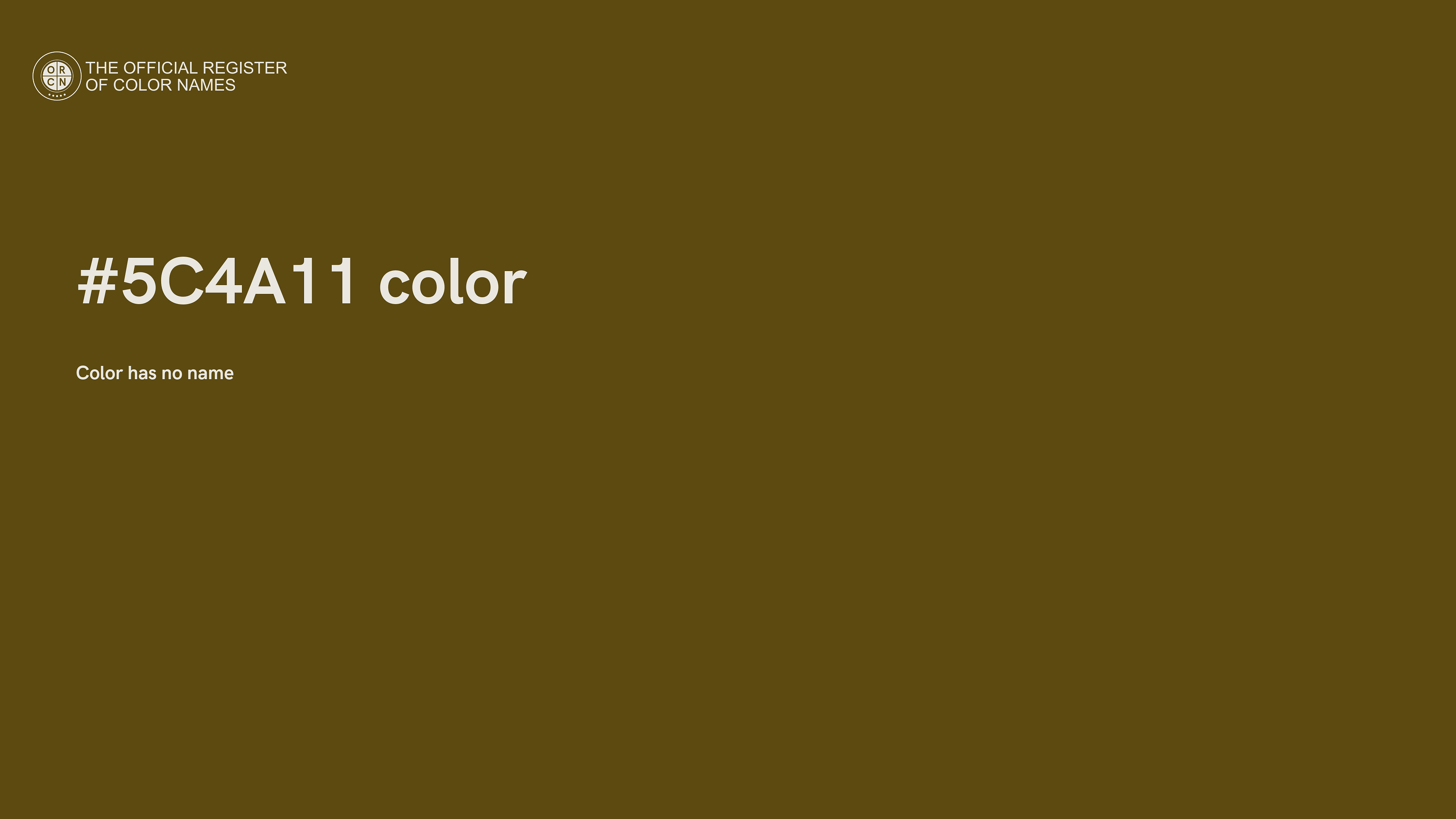 The digital color HEX #5C4A11 belongs to the Yellow Color Family featuring High Saturation (Saturation Family) and Dark (Brightness Family).