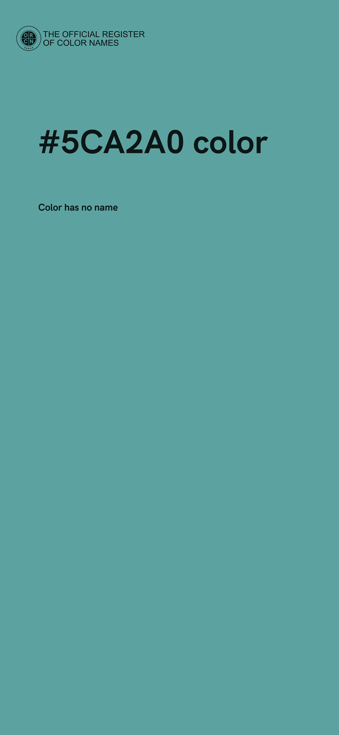 The digital color HEX #5CA2A0 belongs to the Cyan Color Family featuring Mild Saturation (Saturation Family) and Light (Brightness Family).