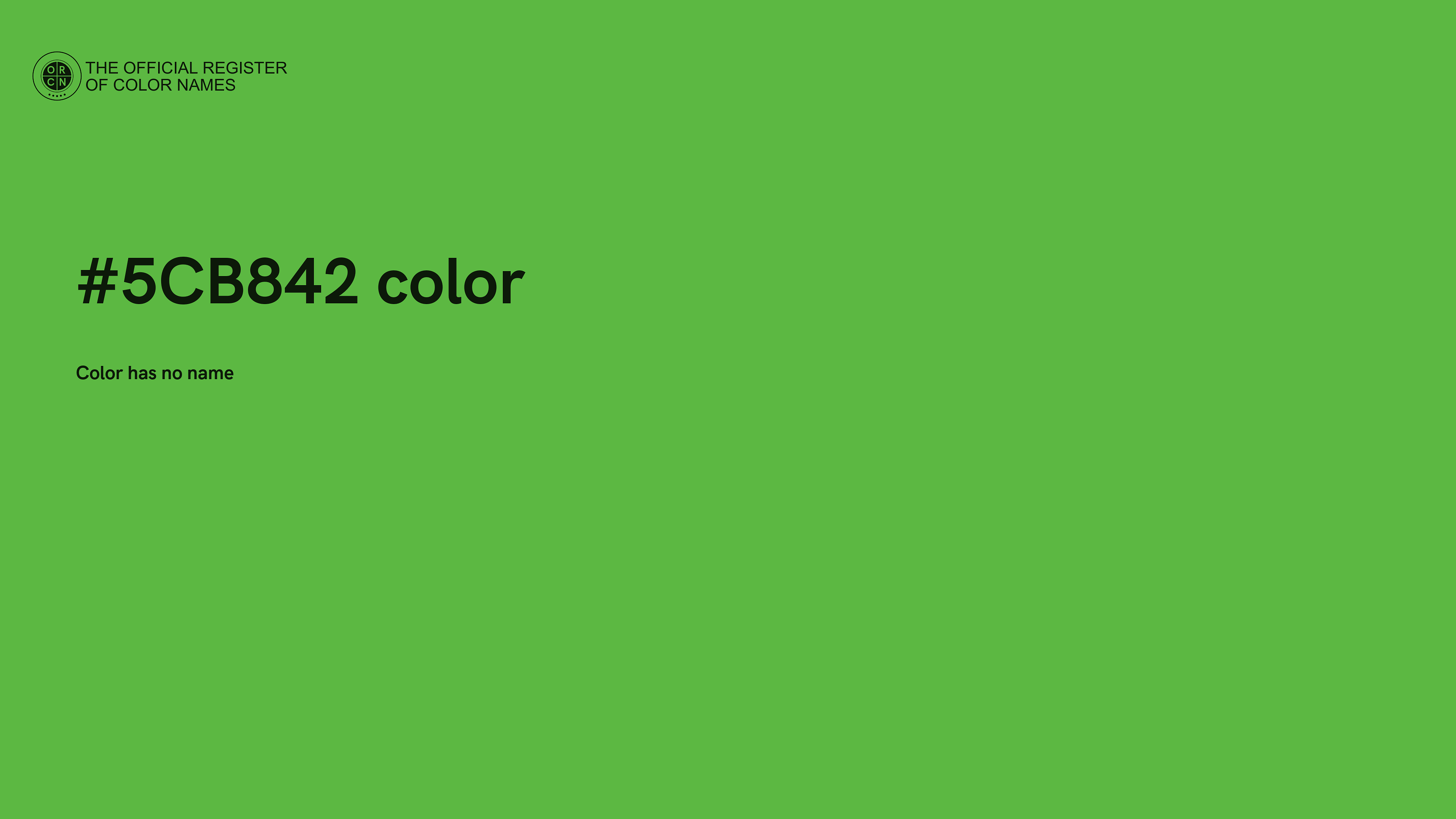 The digital color HEX #5CB842 belongs to the Green Color Family featuring Moderate Saturation (Saturation Family) and Light (Brightness Family).