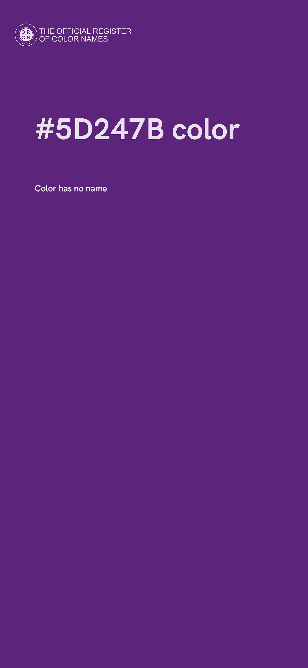 The digital color HEX #5D247B belongs to the Violet Color Family featuring Moderate Saturation (Saturation Family) and Neutral (Brightness Family).