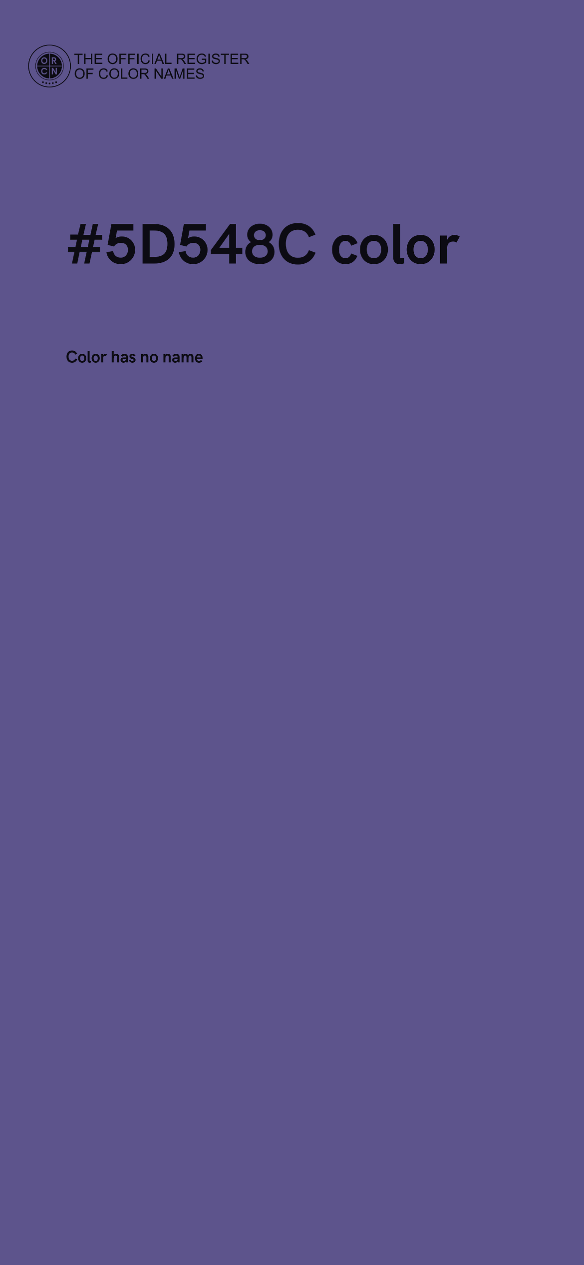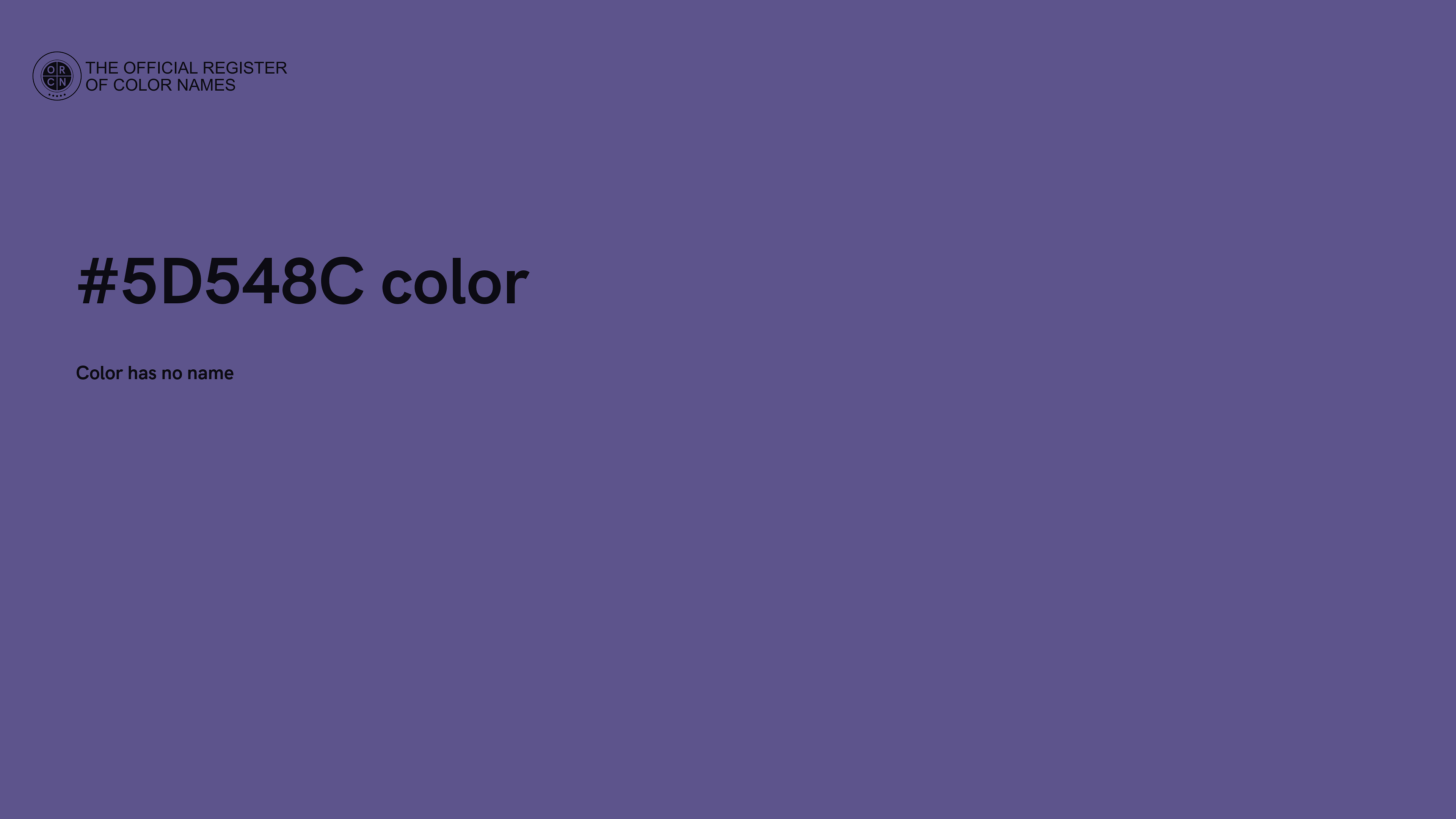 The digital color HEX #5D548C belongs to the Blue Color Family featuring Mild Saturation (Saturation Family) and Light (Brightness Family).