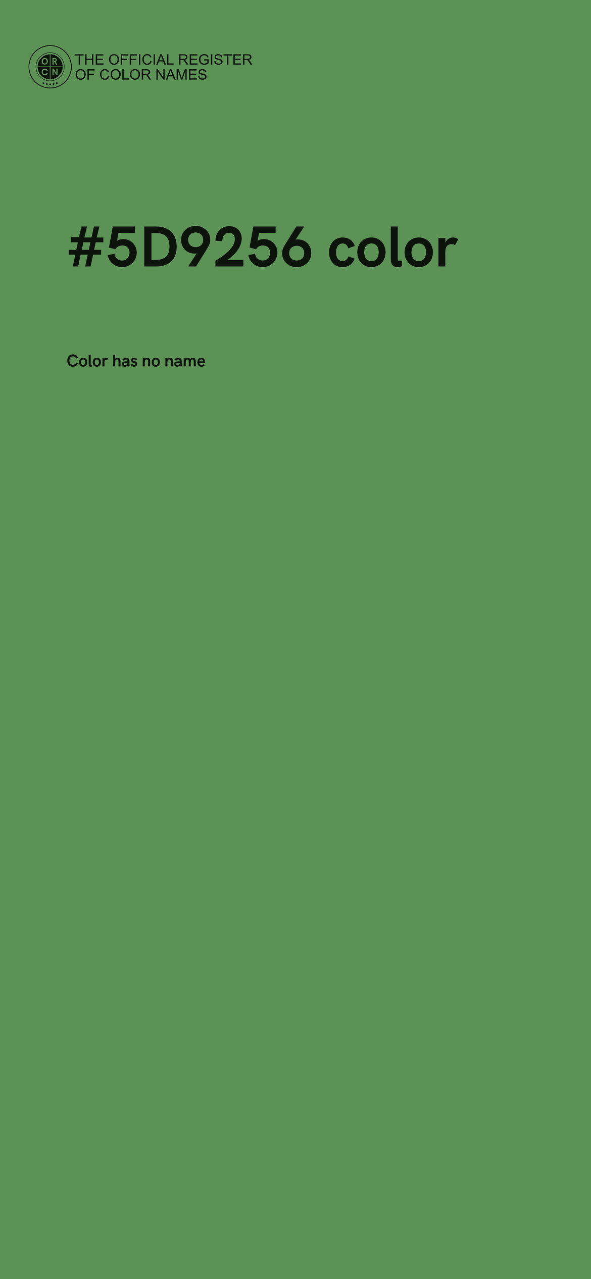 The digital color HEX #5D9256 belongs to the Green Color Family featuring Mild Saturation (Saturation Family) and Light (Brightness Family).