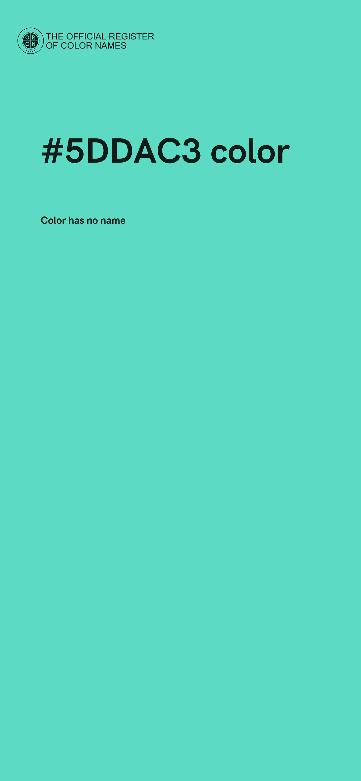 For printing in non digital world, #5DDAC3 is represented in CMYK as 49 Cyan, 0 Magenta, 9 Yellow, and 15 Black (Key) (C:49 M:0 Y:9 K:15).