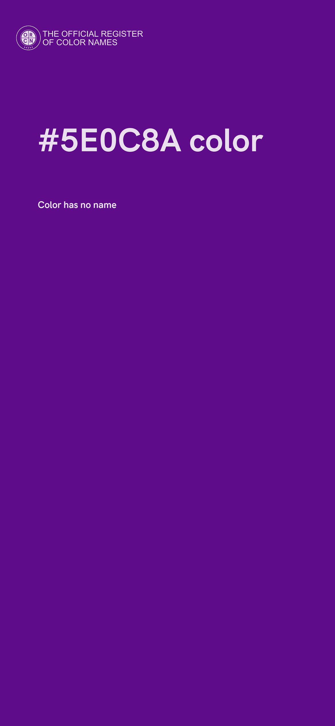 The digital color HEX #5E0C8A belongs to the Violet Color Family featuring High Saturation (Saturation Family) and Neutral (Brightness Family).