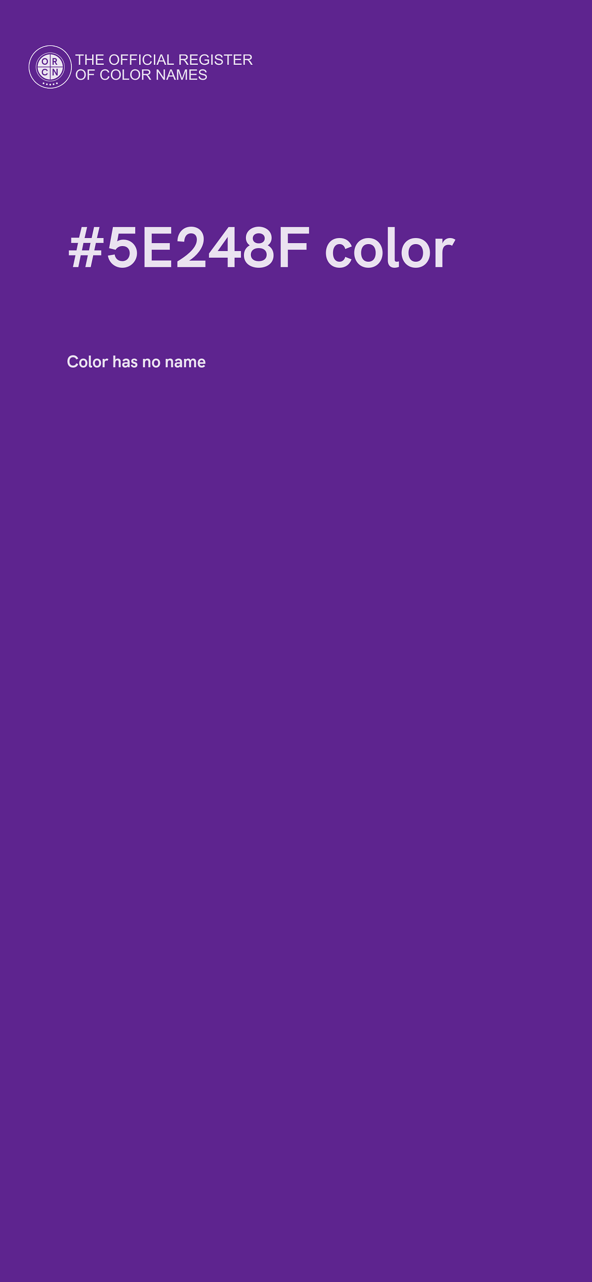The digital color HEX #5E248F belongs to the Violet Color Family featuring High Saturation (Saturation Family) and Neutral (Brightness Family).