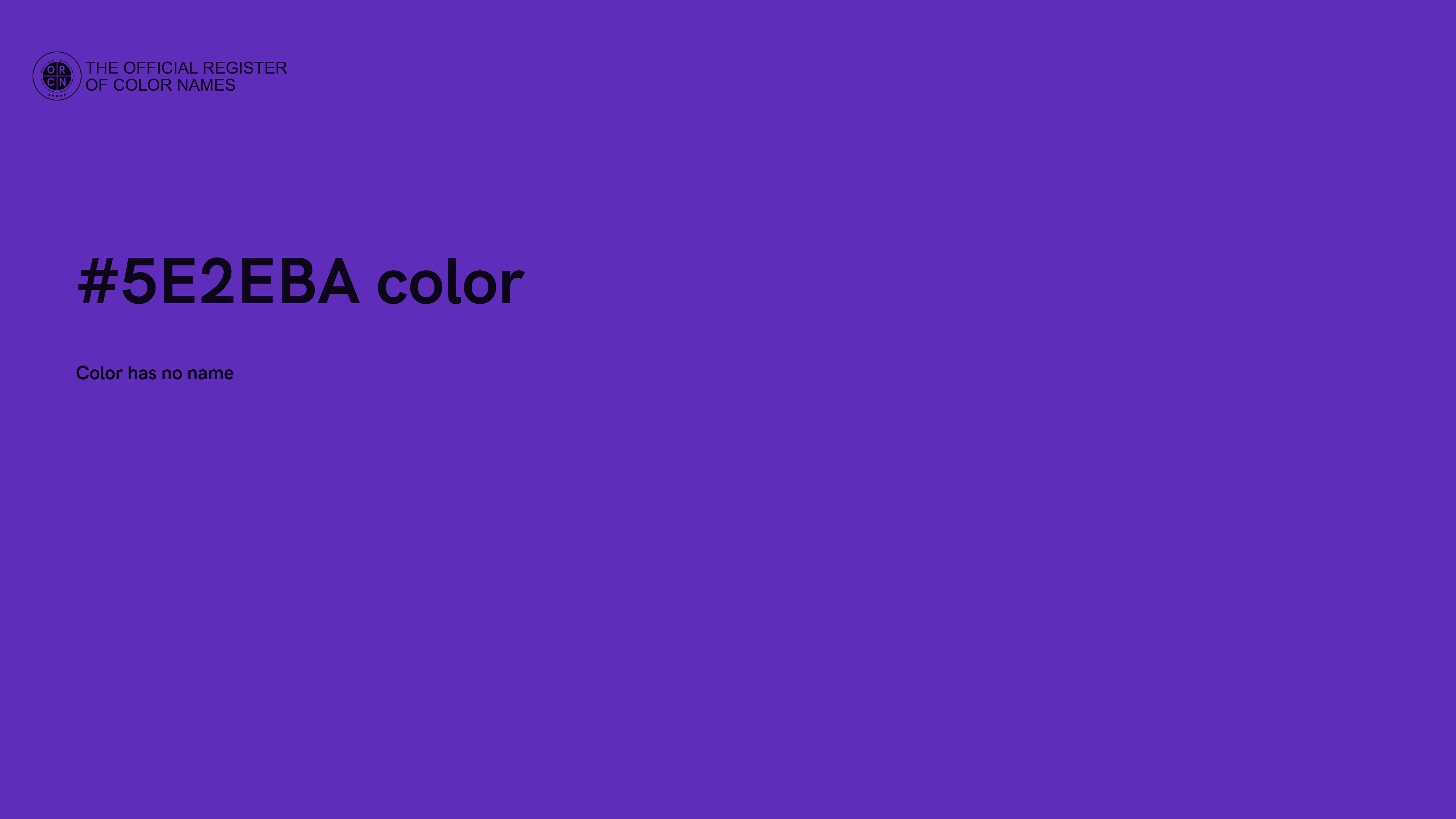 For printing in non digital world, #5E2EBA is represented in CMYK as 36 Cyan, 55 Magenta, 0 Yellow, and 27 Black (Key) (C:36 M:55 Y:0 K:27).