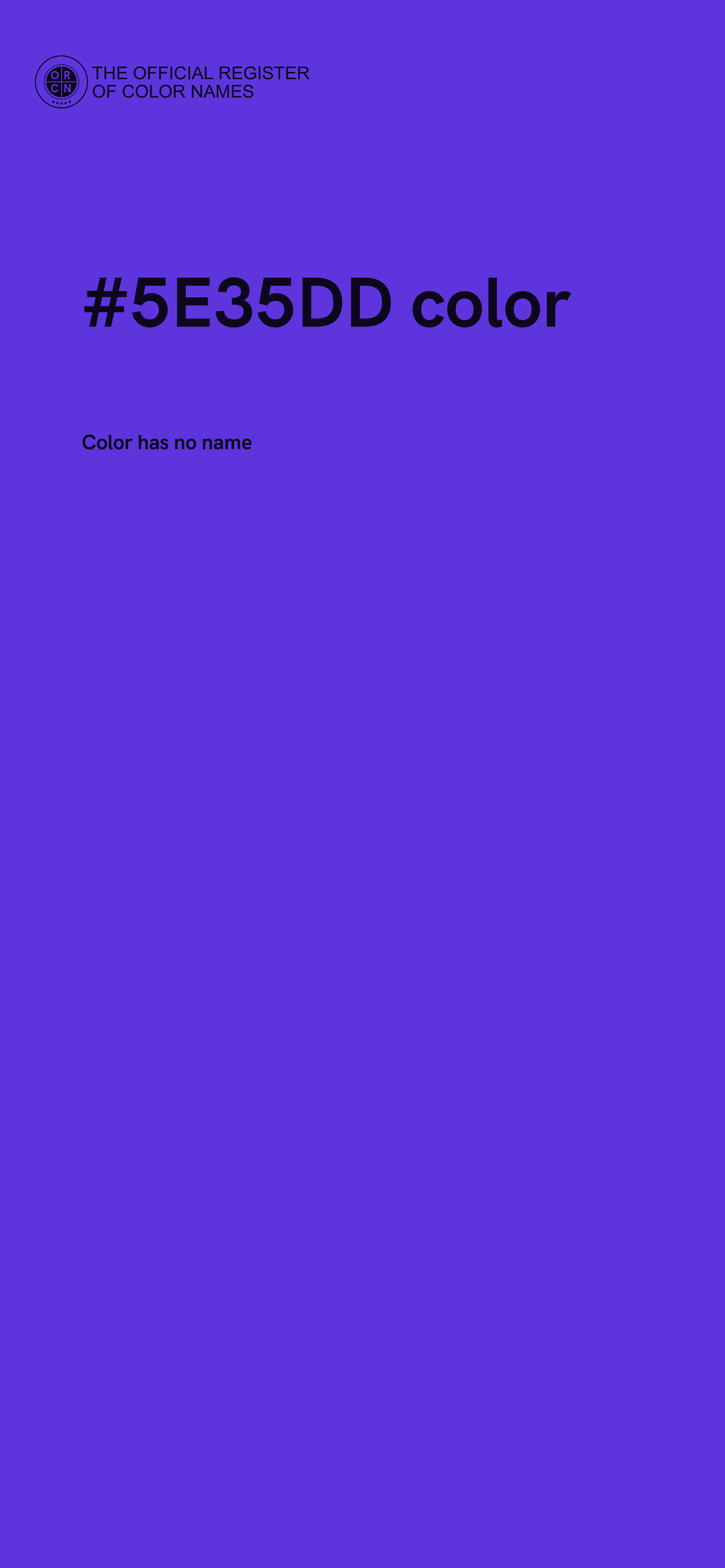 For printing in non digital world, #5E35DD is represented in CMYK as 50 Cyan, 66 Magenta, 0 Yellow, and 13 Black (Key) (C:50 M:66 Y:0 K:13).