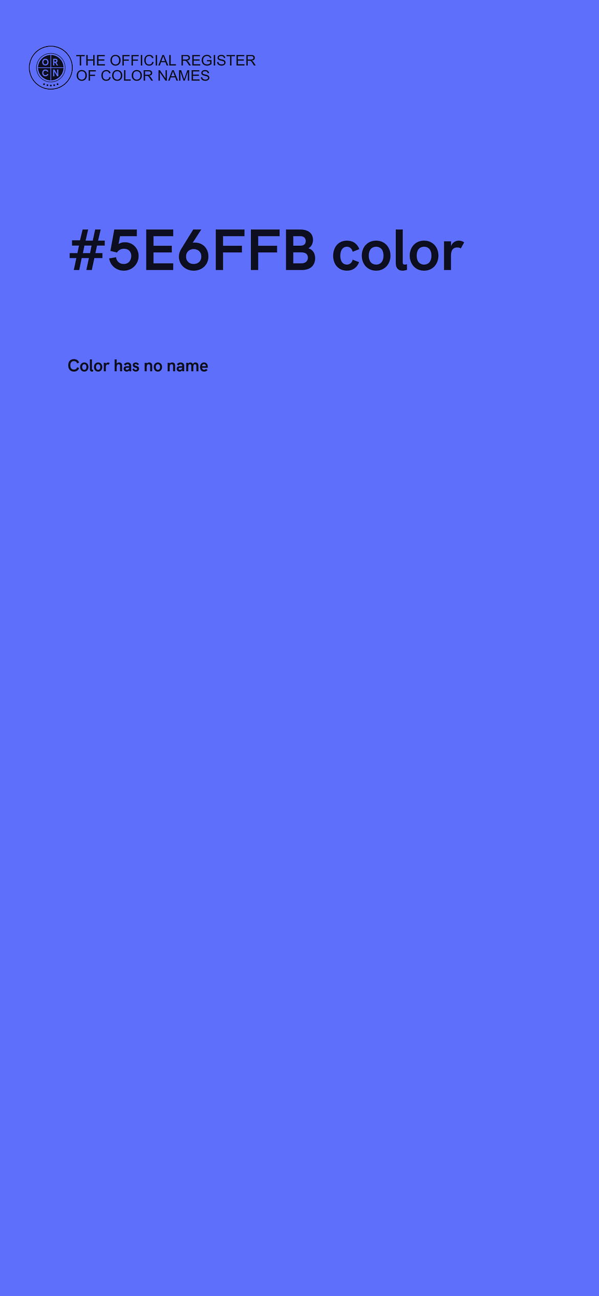 The digital color HEX #5E6FFB belongs to the Blue Color Family featuring Full Saturation (Saturation Family) and Very Light (Brightness Family).