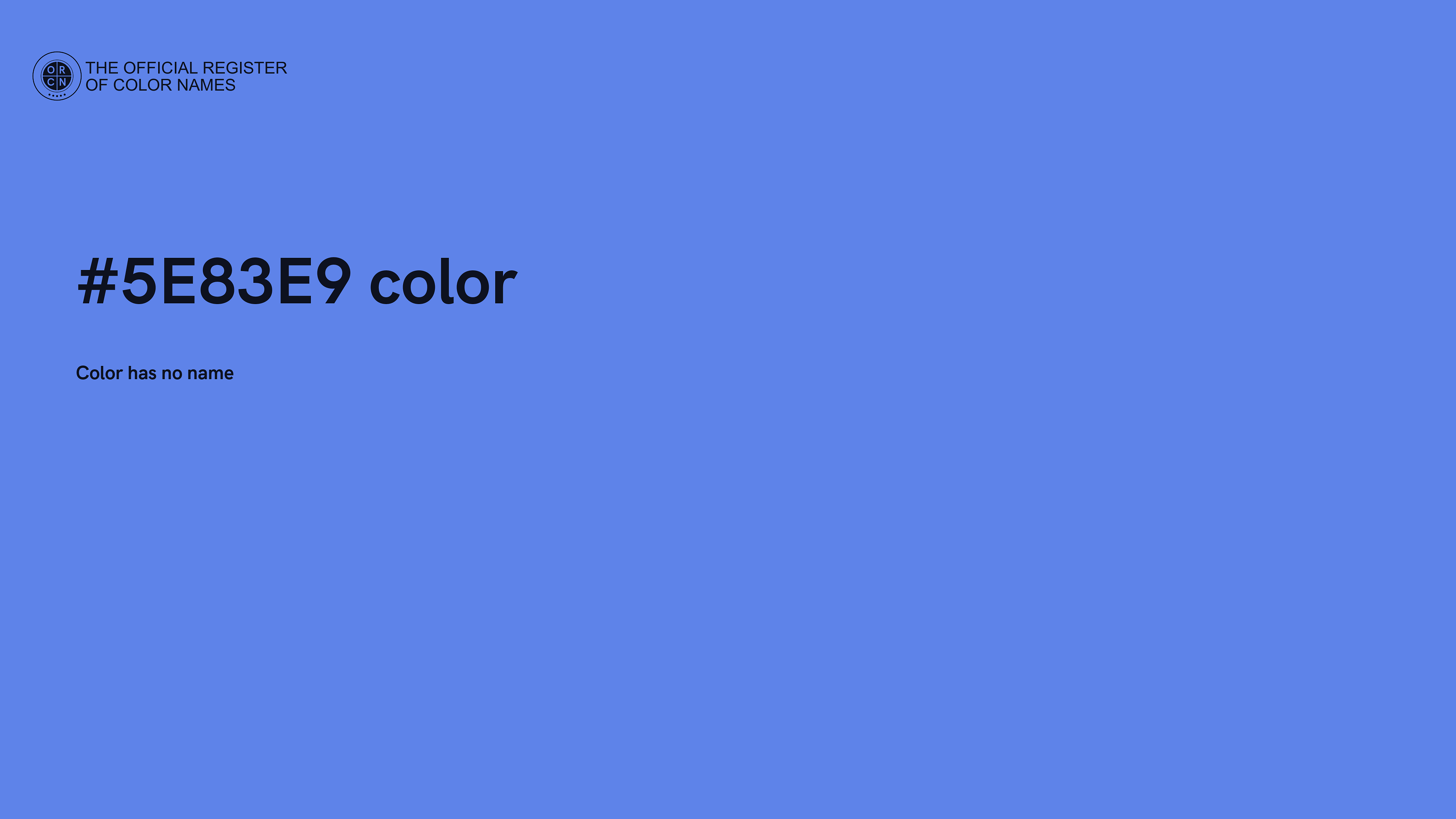 The digital color HEX #5E83E9 belongs to the Azure Color Family featuring High Saturation (Saturation Family) and Very Light (Brightness Family).