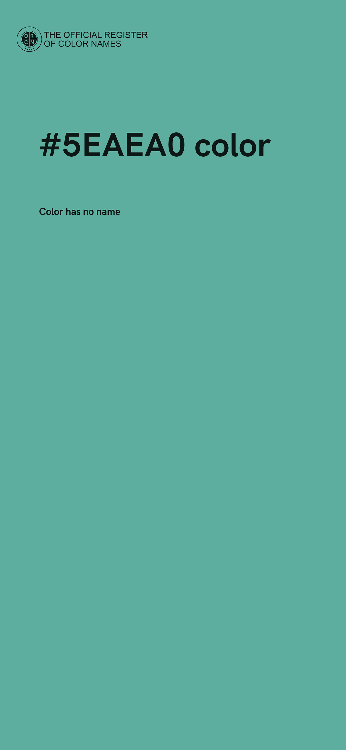 The digital color HEX #5EAEA0 belongs to the Cyan Color Family featuring Mild Saturation (Saturation Family) and Light (Brightness Family).