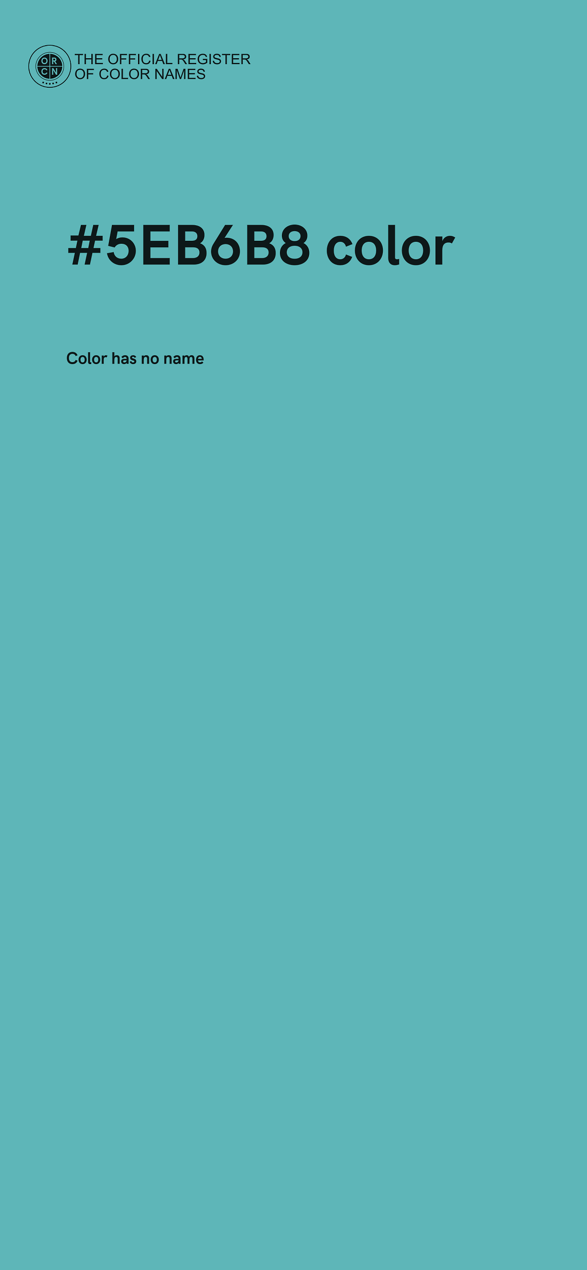 The digital color HEX #5EB6B8 belongs to the Cyan Color Family featuring Mild Saturation (Saturation Family) and Light (Brightness Family).