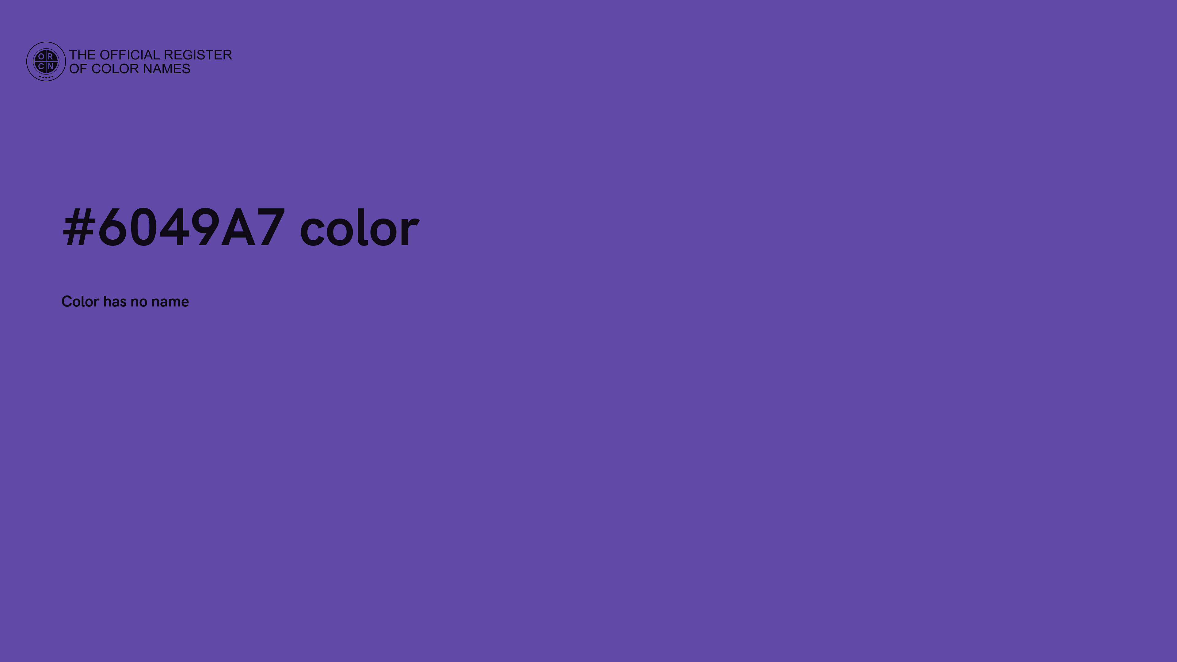 The digital color HEX #6049A7 belongs to the Violet Color Family featuring Mild Saturation (Saturation Family) and Light (Brightness Family).