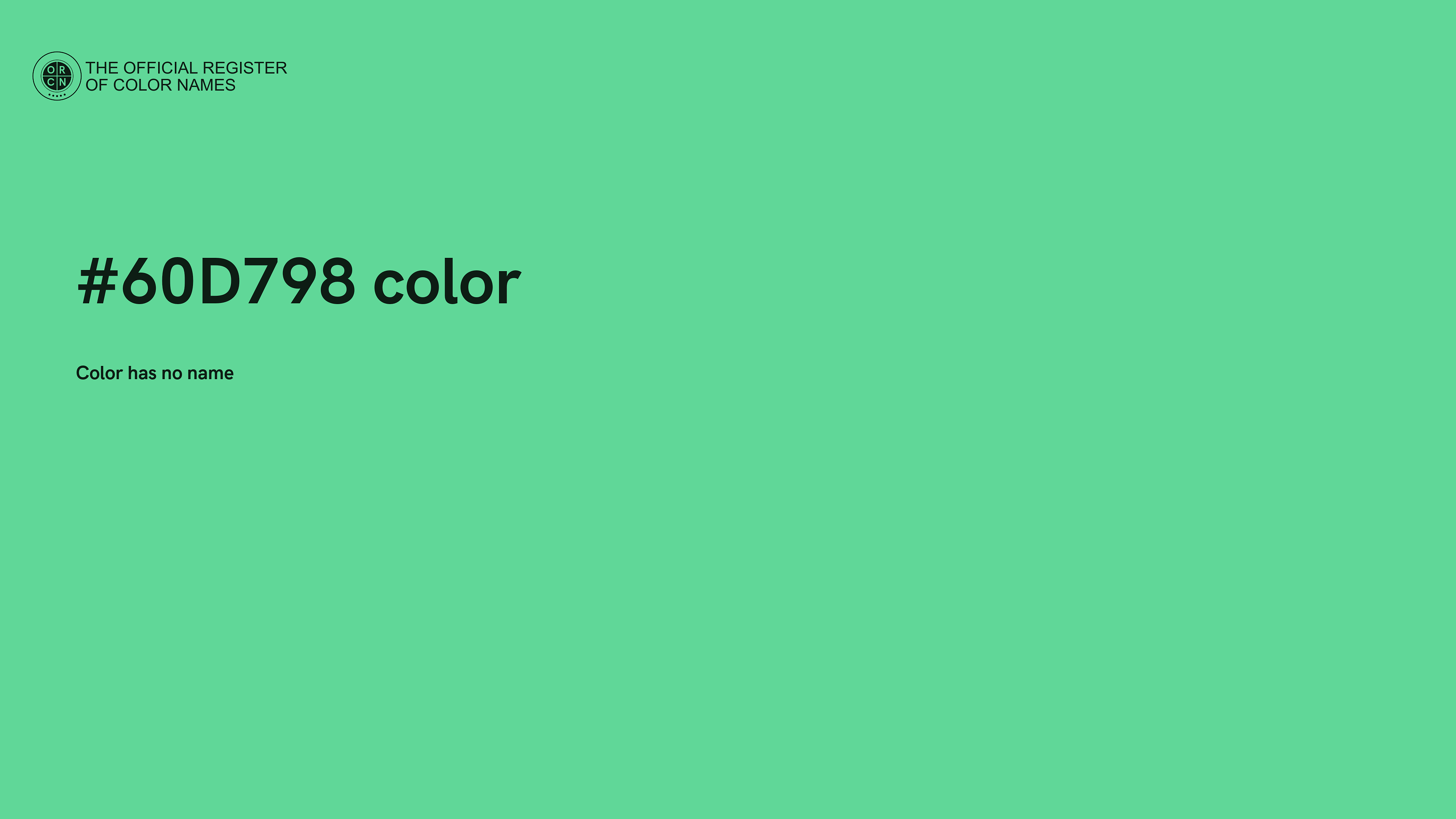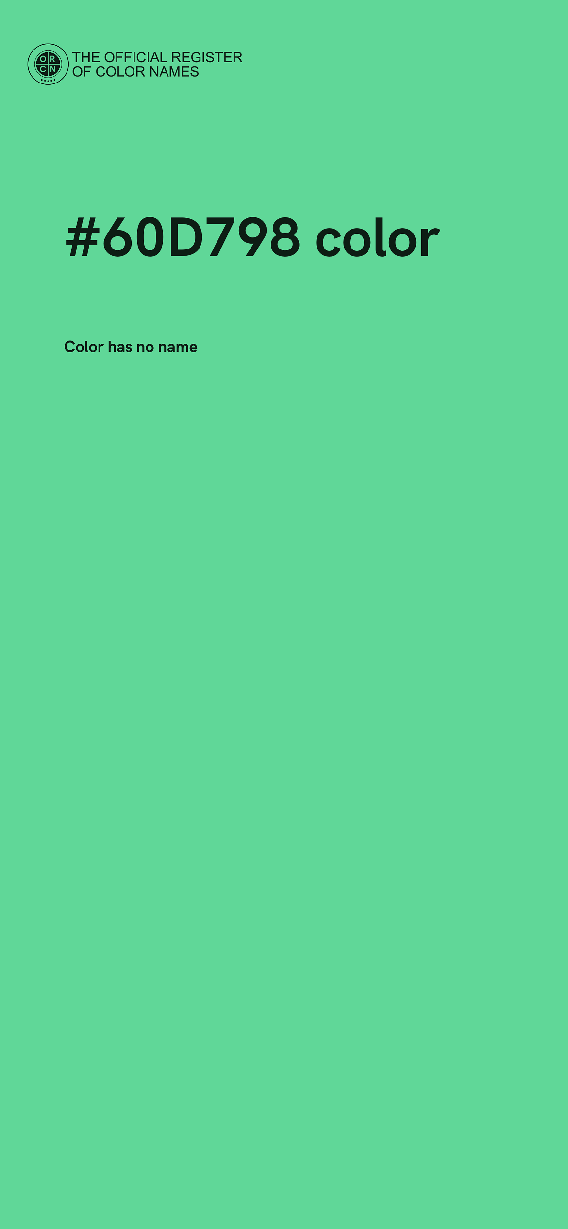 The digital color HEX #60D798 belongs to the Spring Green Color Family featuring High Saturation (Saturation Family) and Very Light (Brightness Family).