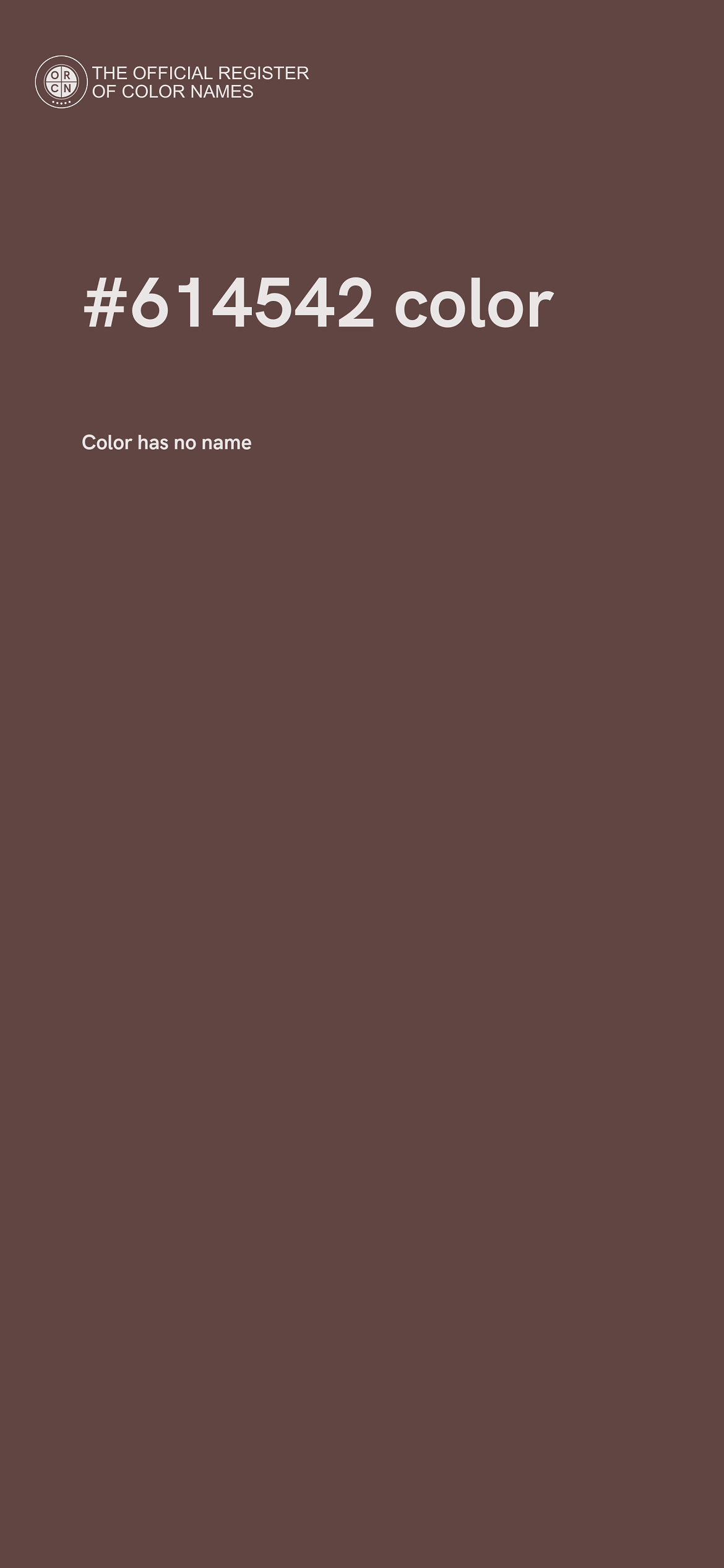 The digital color HEX #614542 belongs to the Red Color Family featuring Low Saturation (Saturation Family) and Neutral (Brightness Family).