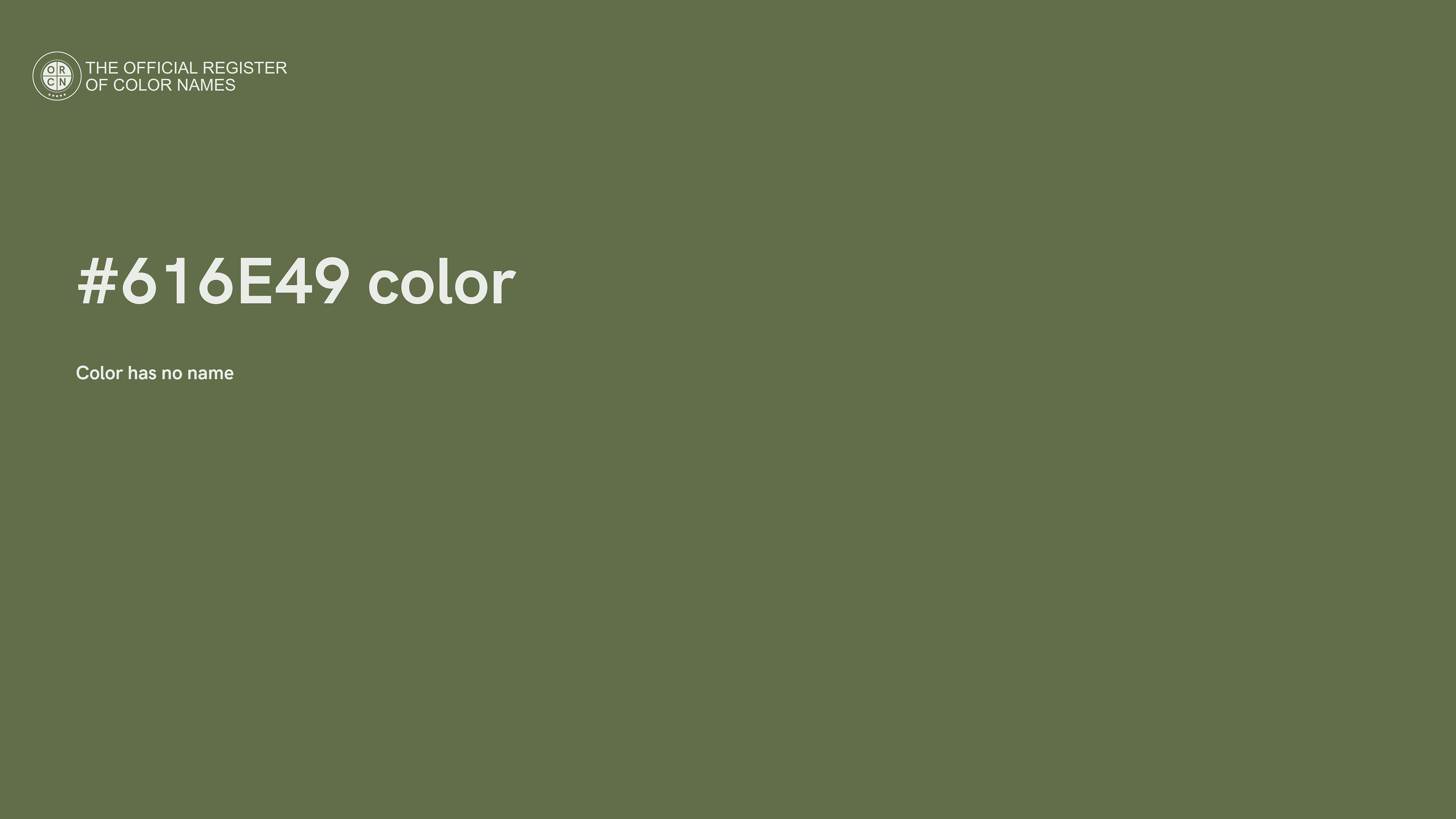 For printing in non digital world, #616E49 is represented in CMYK as 5 Cyan, 0 Magenta, 15 Yellow, and 57 Black (Key) (C:5 M:0 Y:15 K:57).