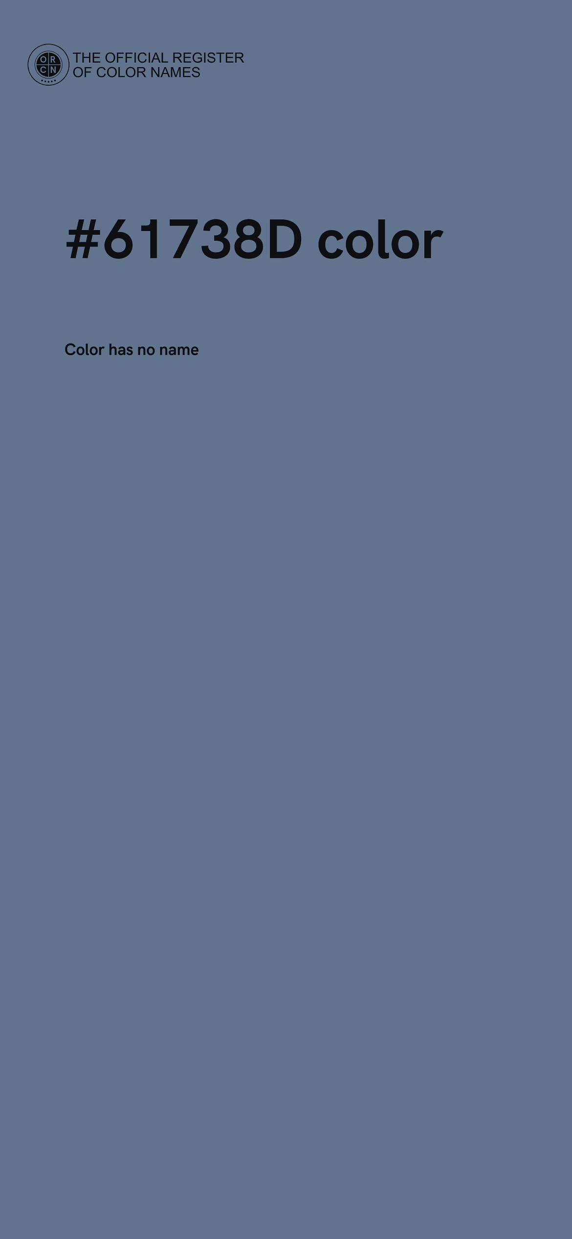 The digital color HEX #61738D belongs to the Azure Color Family featuring Low Saturation (Saturation Family) and Light (Brightness Family).
