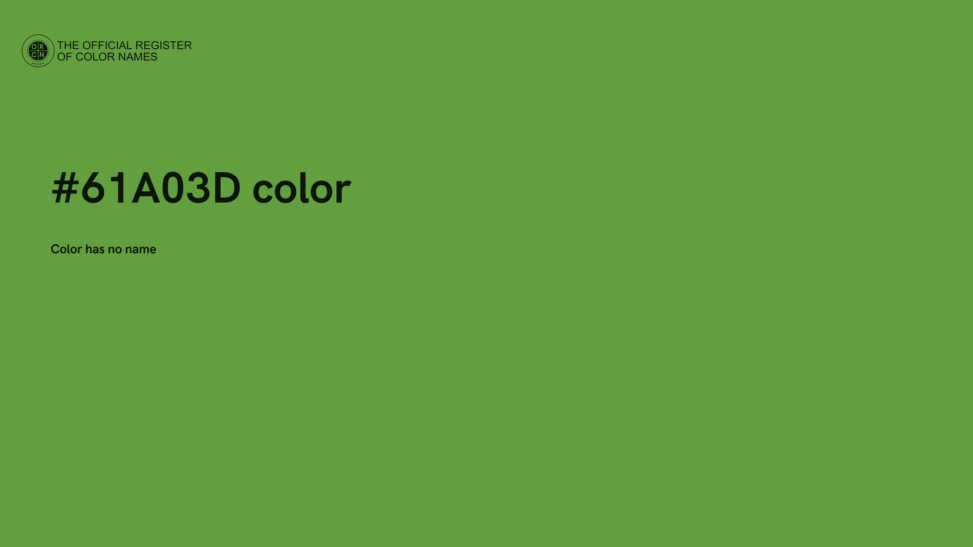 The digital color HEX #61A03D belongs to the Chartreuse Color Family featuring Moderate Saturation (Saturation Family) and Light (Brightness Family).