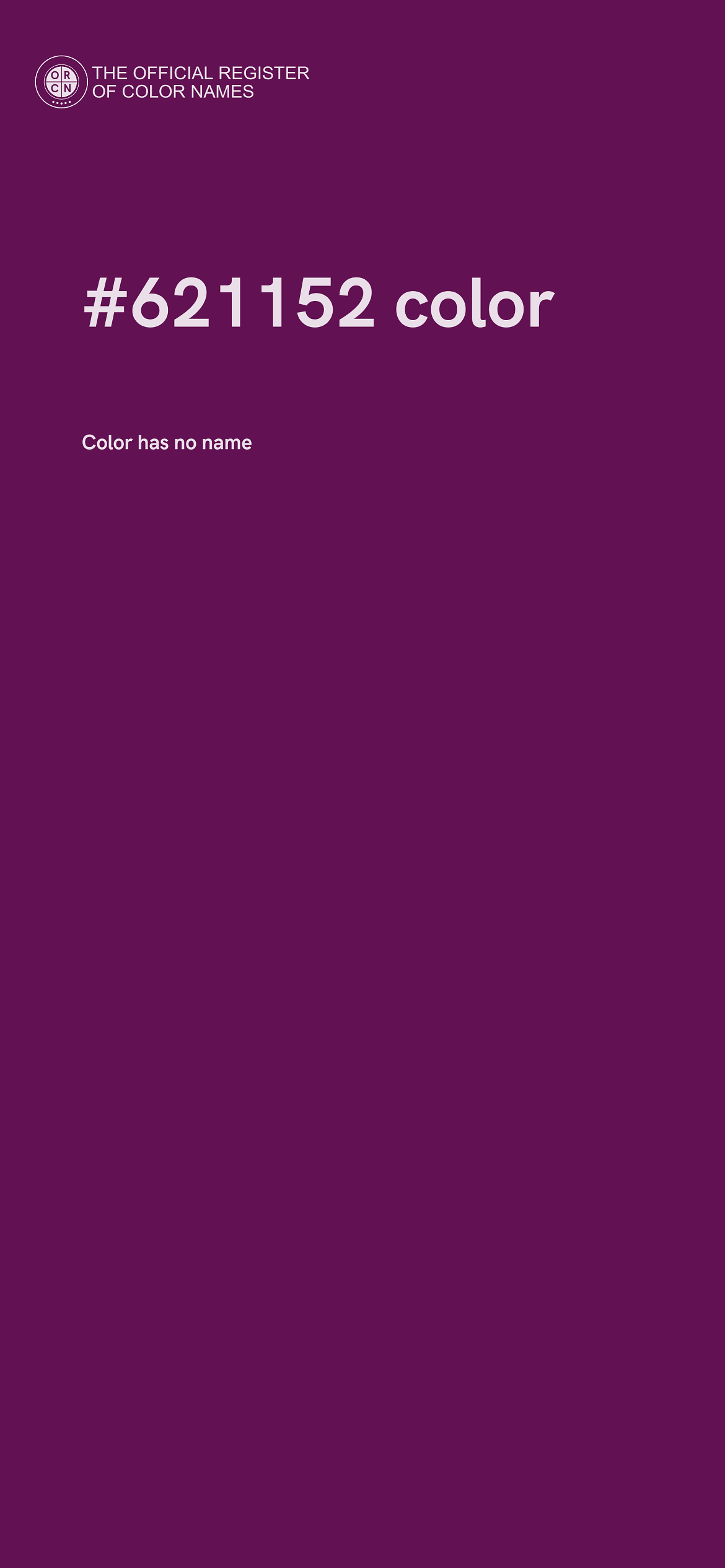 The digital color HEX #621152 belongs to the Magenta Color Family featuring High Saturation (Saturation Family) and Dark (Brightness Family).