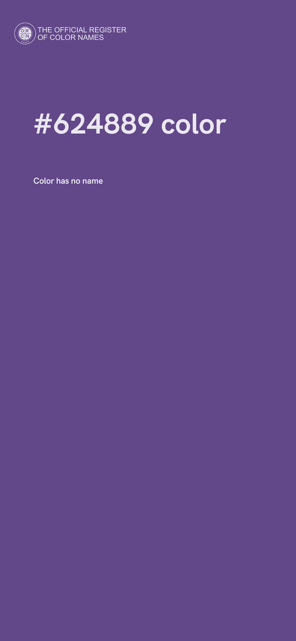 The digital color HEX #624889 belongs to the Violet Color Family featuring Mild Saturation (Saturation Family) and Light (Brightness Family).