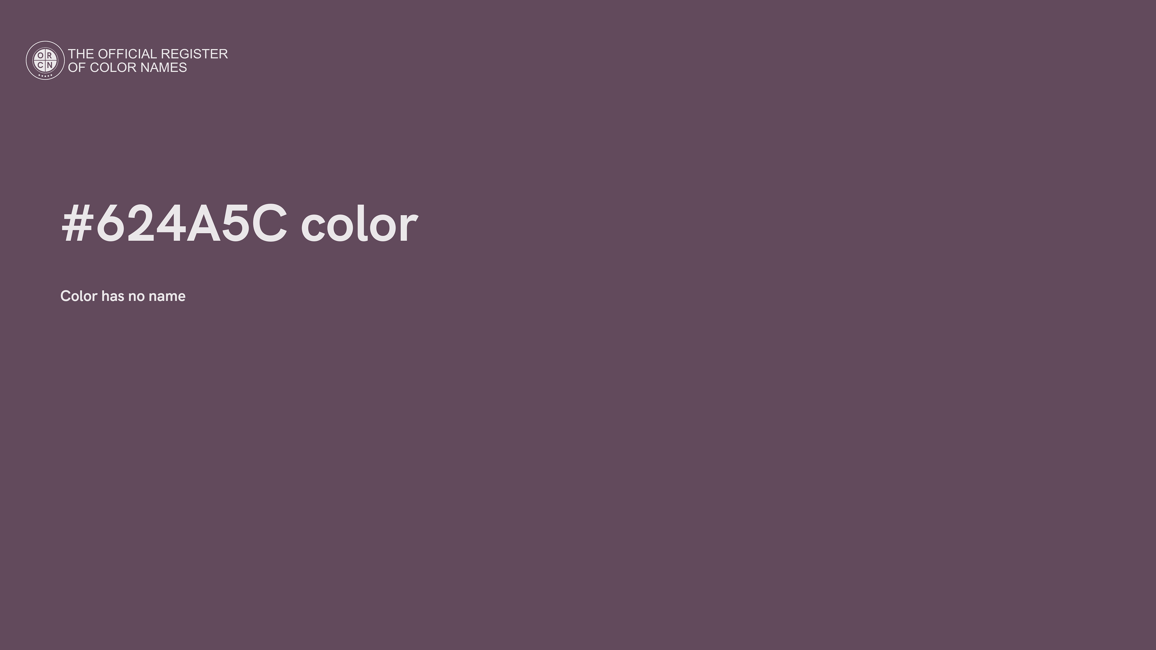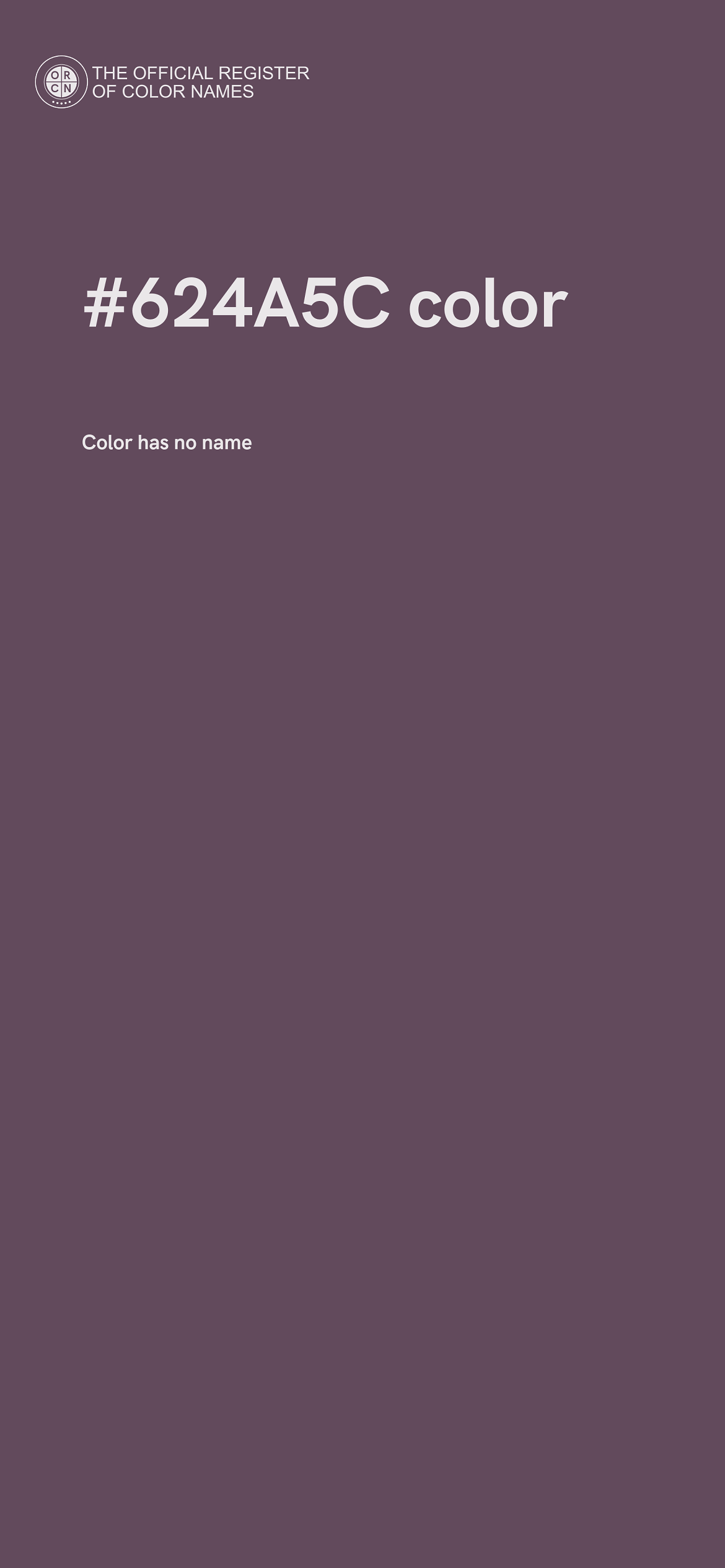 For printing in non digital world, #624A5C is represented in CMYK as 0 Cyan, 9 Magenta, 2 Yellow, and 62 Black (Key) (C:0 M:9 Y:2 K:62).