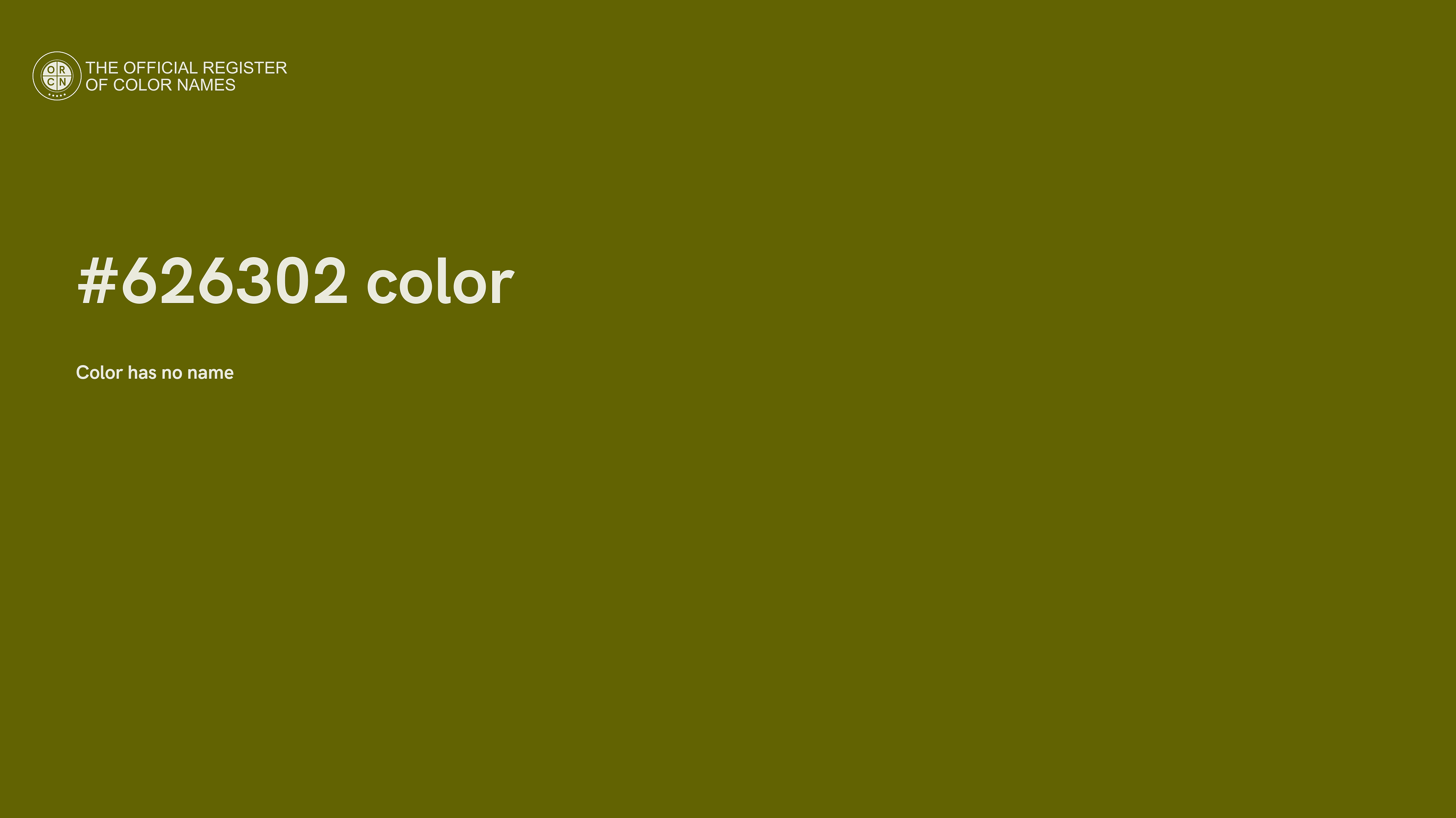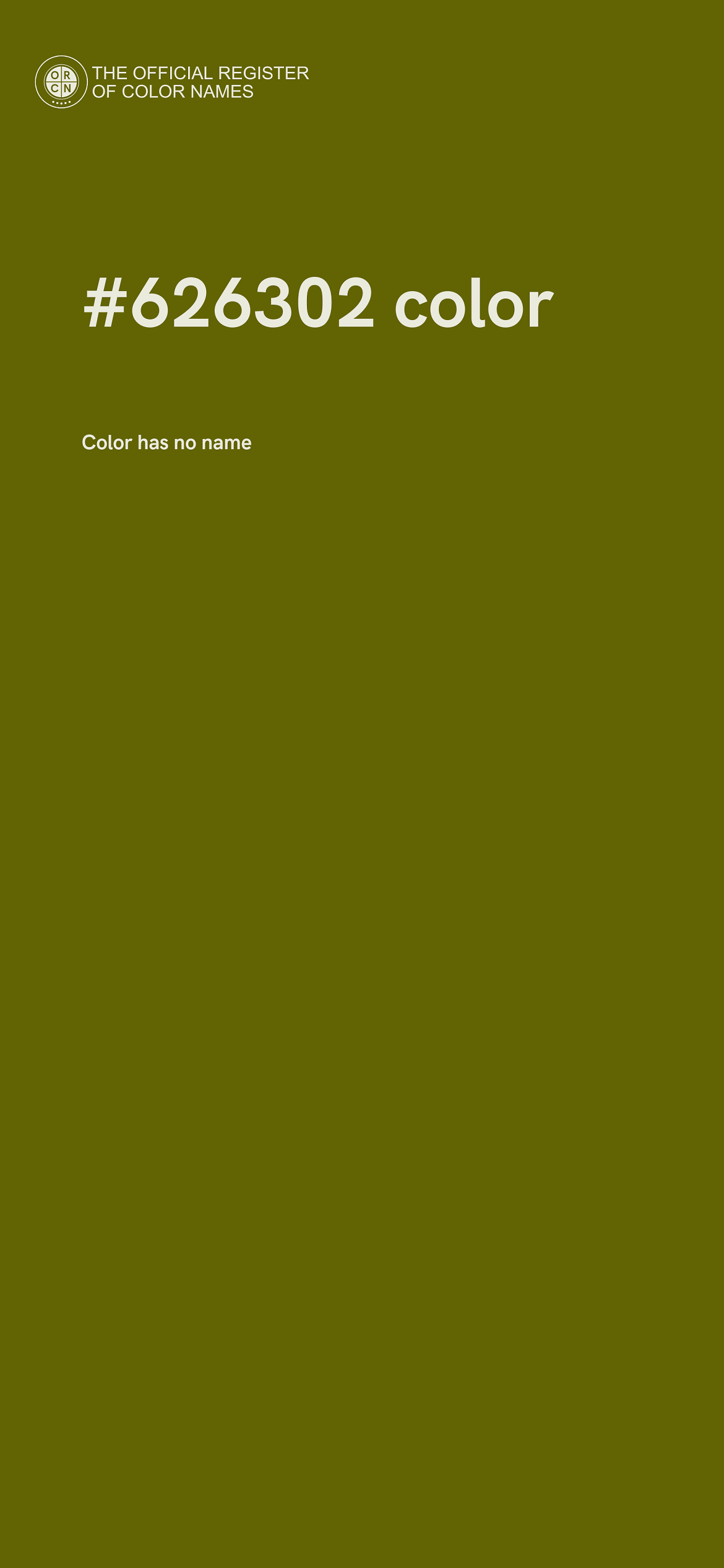 For printing in non digital world, #626302 is represented in CMYK as 0 Cyan, 0 Magenta, 38 Yellow, and 61 Black (Key) (C:0 M:0 Y:38 K:61).