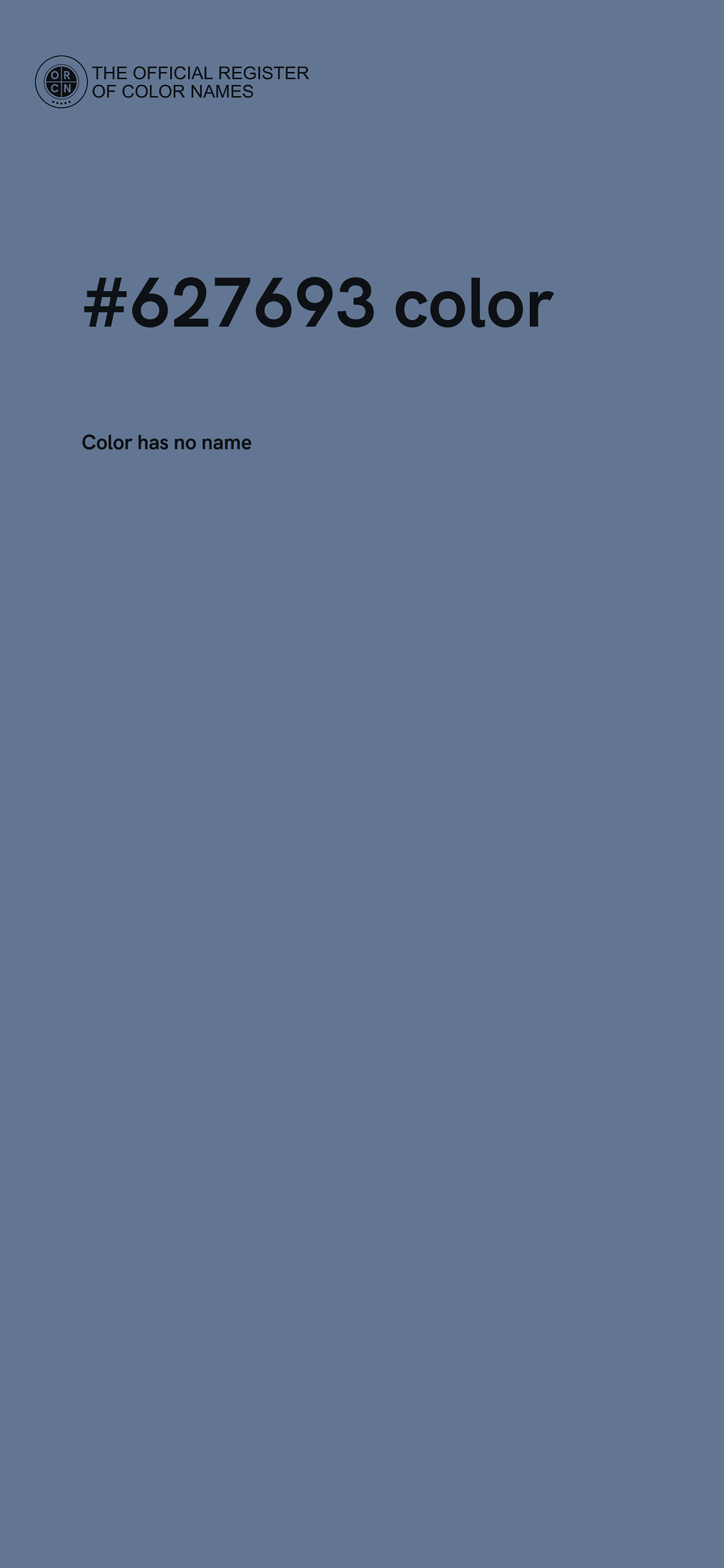 For printing in non digital world, #627693 is represented in CMYK as 19 Cyan, 11 Magenta, 0 Yellow, and 42 Black (Key) (C:19 M:11 Y:0 K:42).
