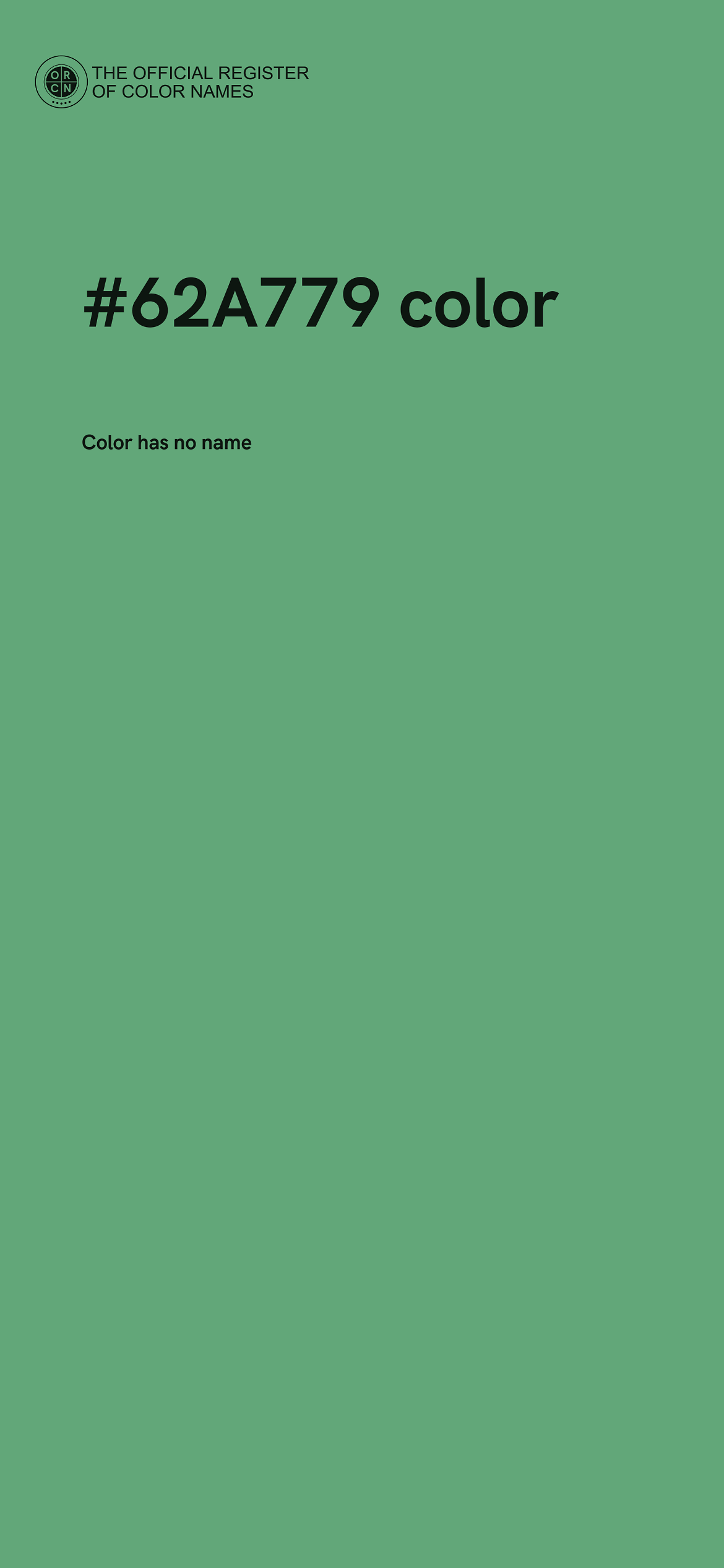 The digital color HEX #62A779 belongs to the Spring Green Color Family featuring Mild Saturation (Saturation Family) and Light (Brightness Family).