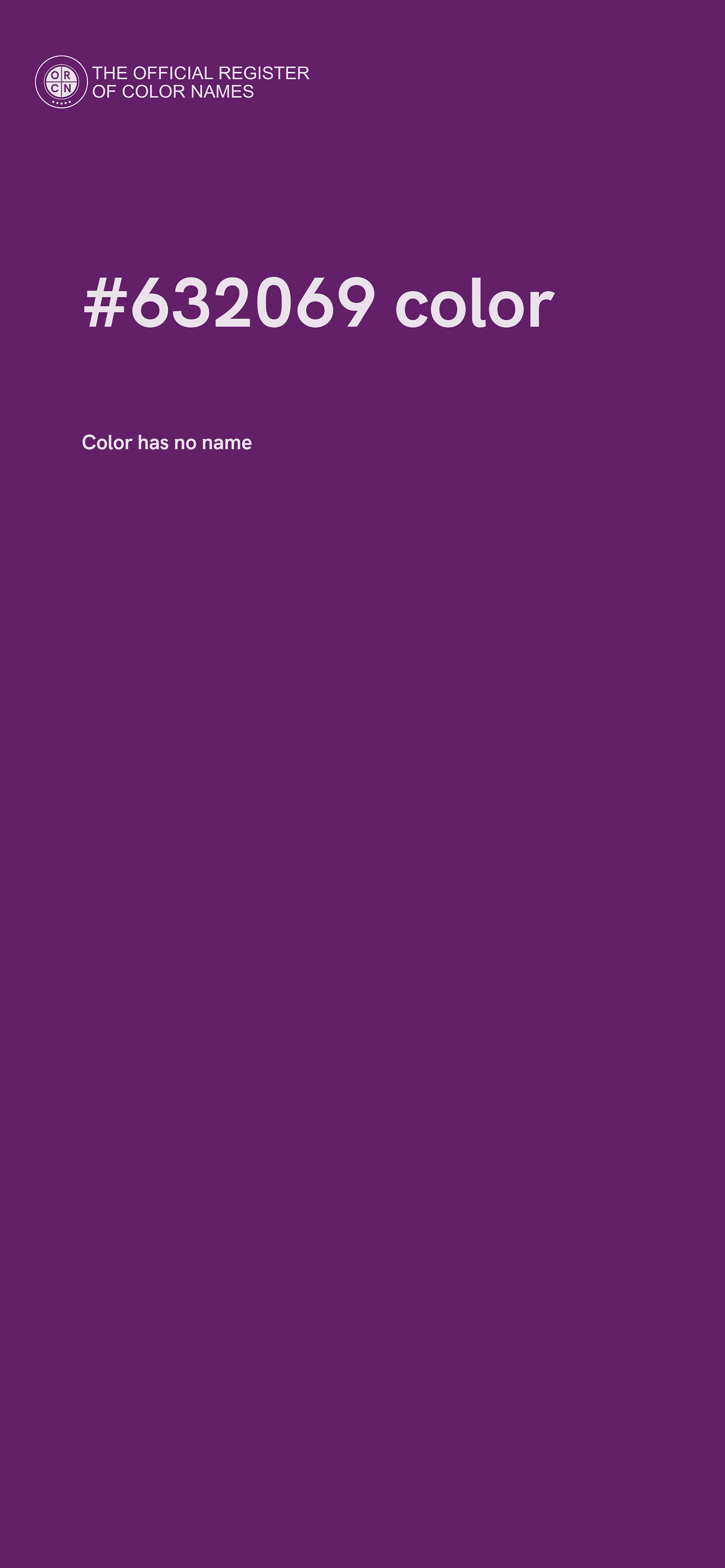 The digital color HEX #632069 belongs to the Magenta Color Family featuring Moderate Saturation (Saturation Family) and Neutral (Brightness Family).