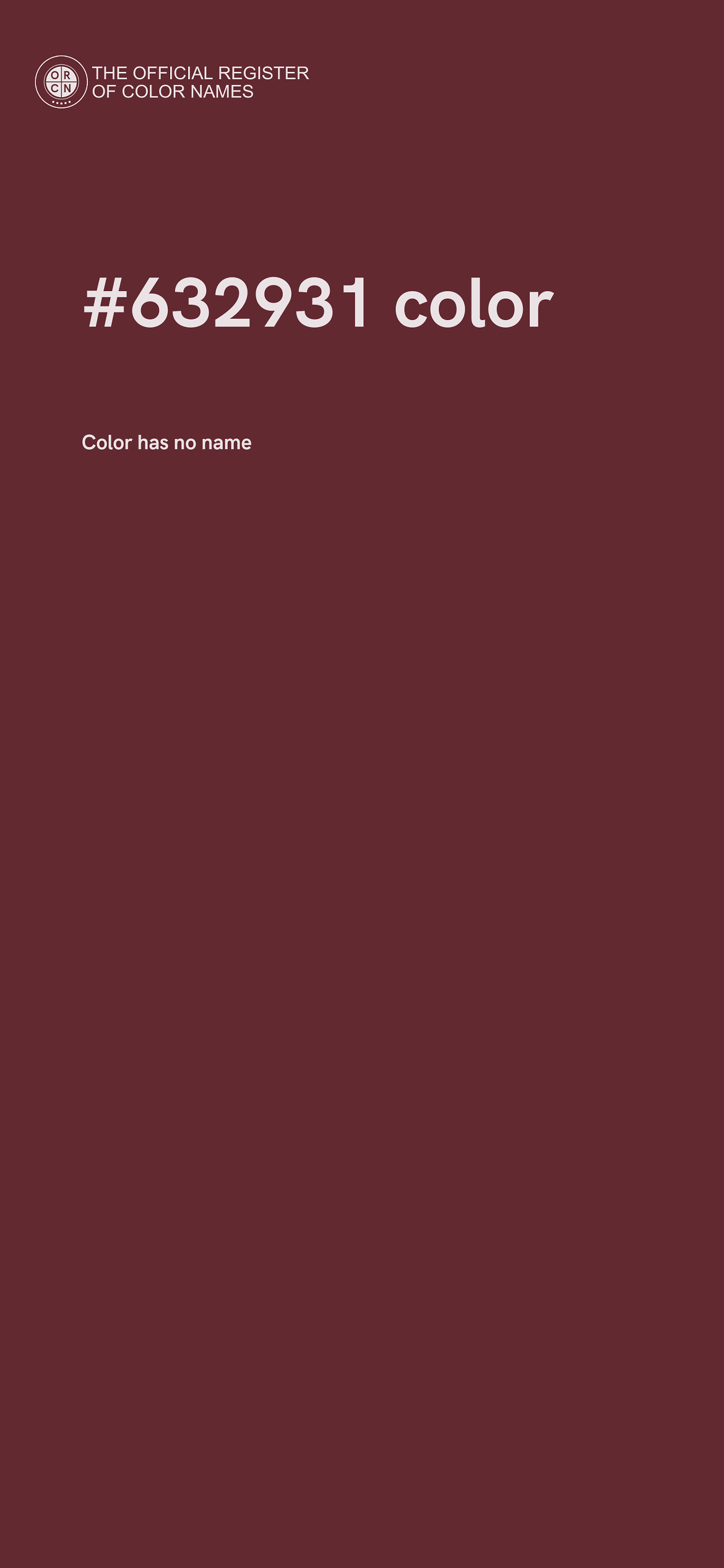 The digital color HEX #632931 belongs to the Red Color Family featuring Moderate Saturation (Saturation Family) and Neutral (Brightness Family).