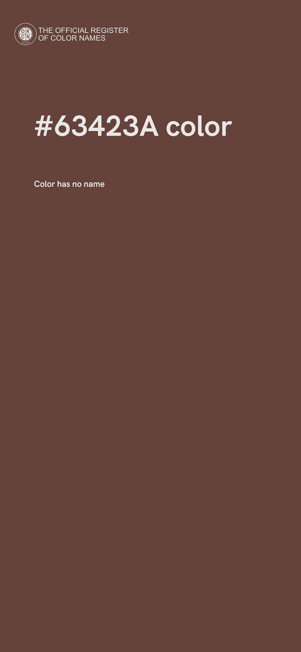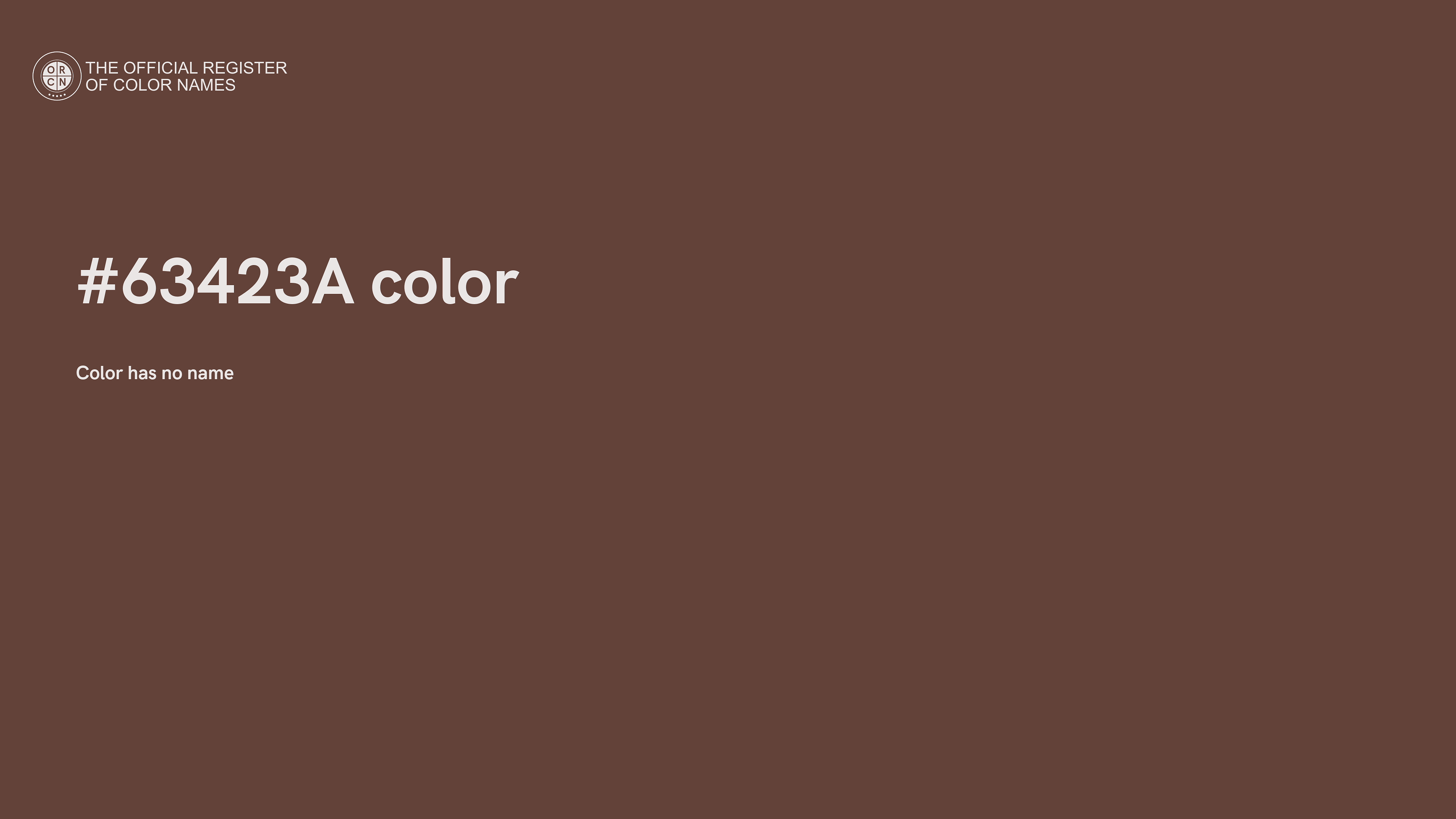 The digital color HEX #63423A belongs to the Red Color Family featuring Mild Saturation (Saturation Family) and Neutral (Brightness Family).