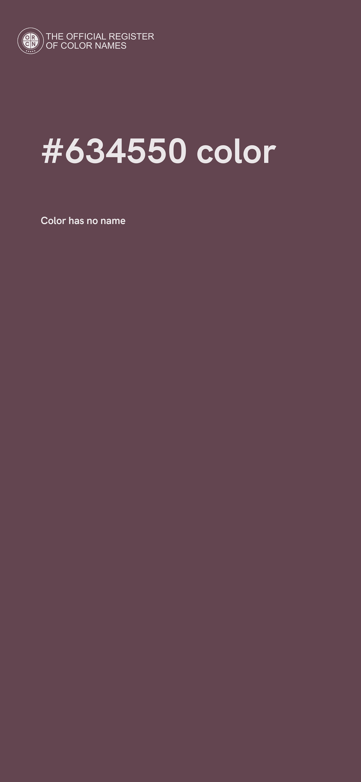 The digital color HEX #634550 belongs to the Rose Color Family featuring Low Saturation (Saturation Family) and Neutral (Brightness Family).