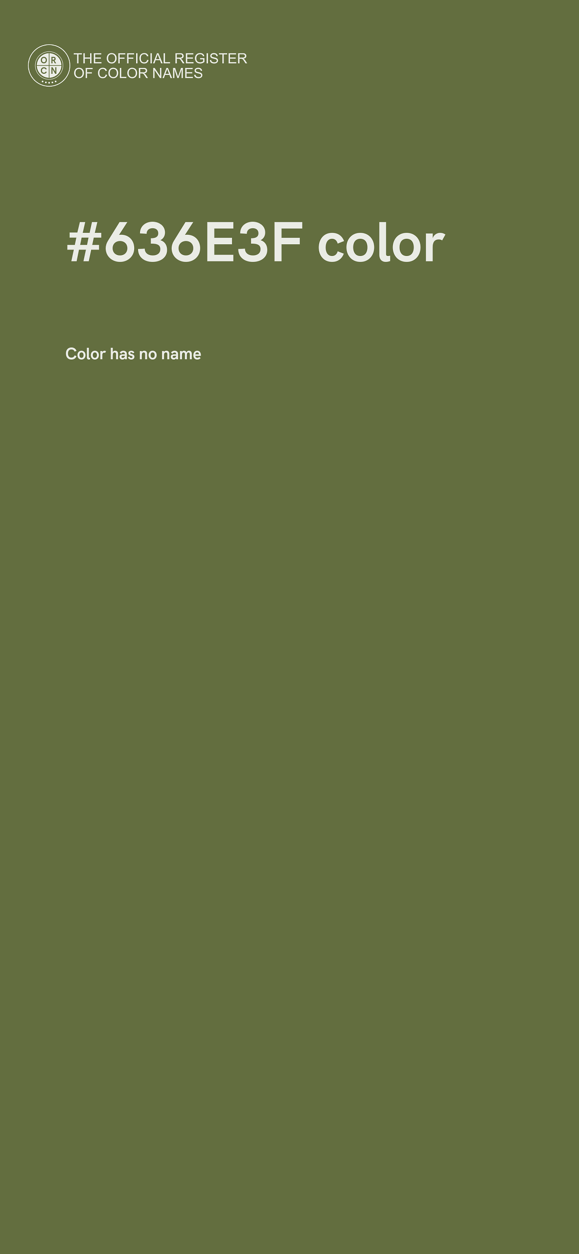 The digital color HEX #636E3F belongs to the Yellow Color Family featuring Mild Saturation (Saturation Family) and Neutral (Brightness Family).