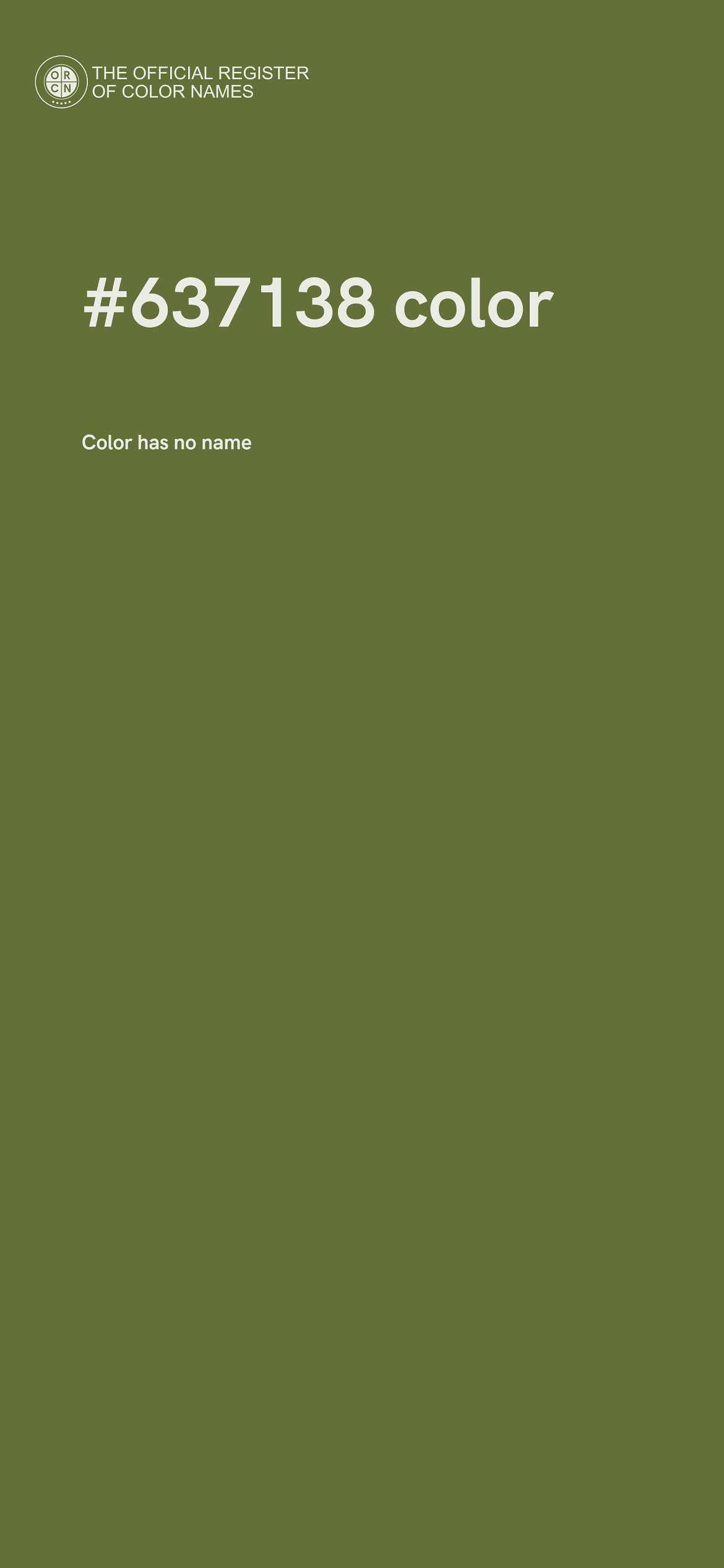 For printing in non digital world, #637138 is represented in CMYK as 5 Cyan, 0 Magenta, 22 Yellow, and 56 Black (Key) (C:5 M:0 Y:22 K:56).