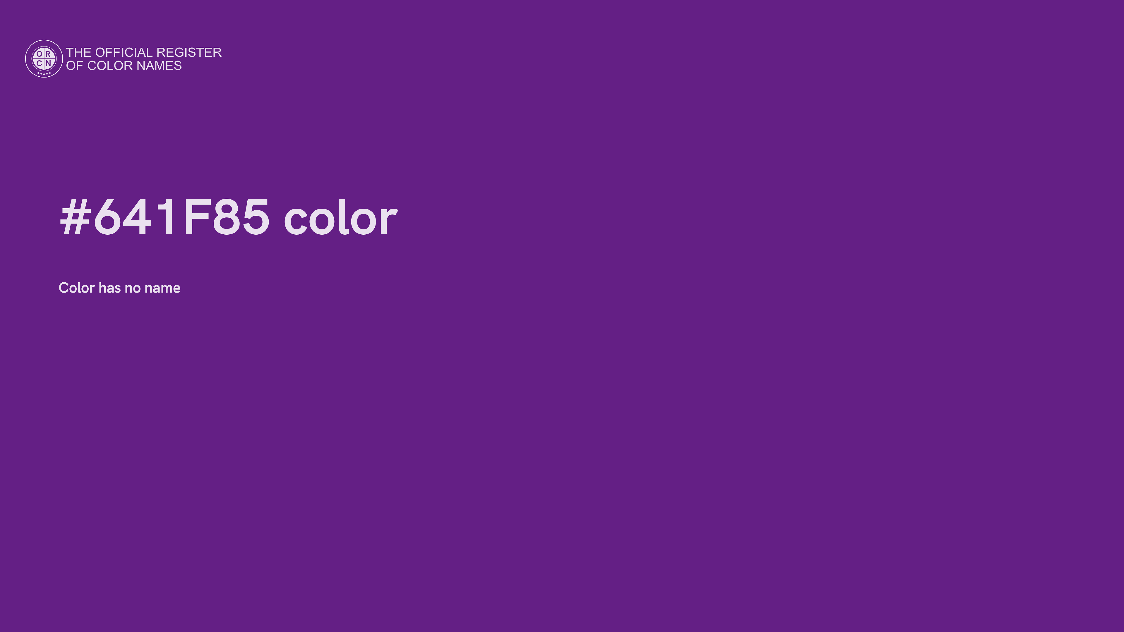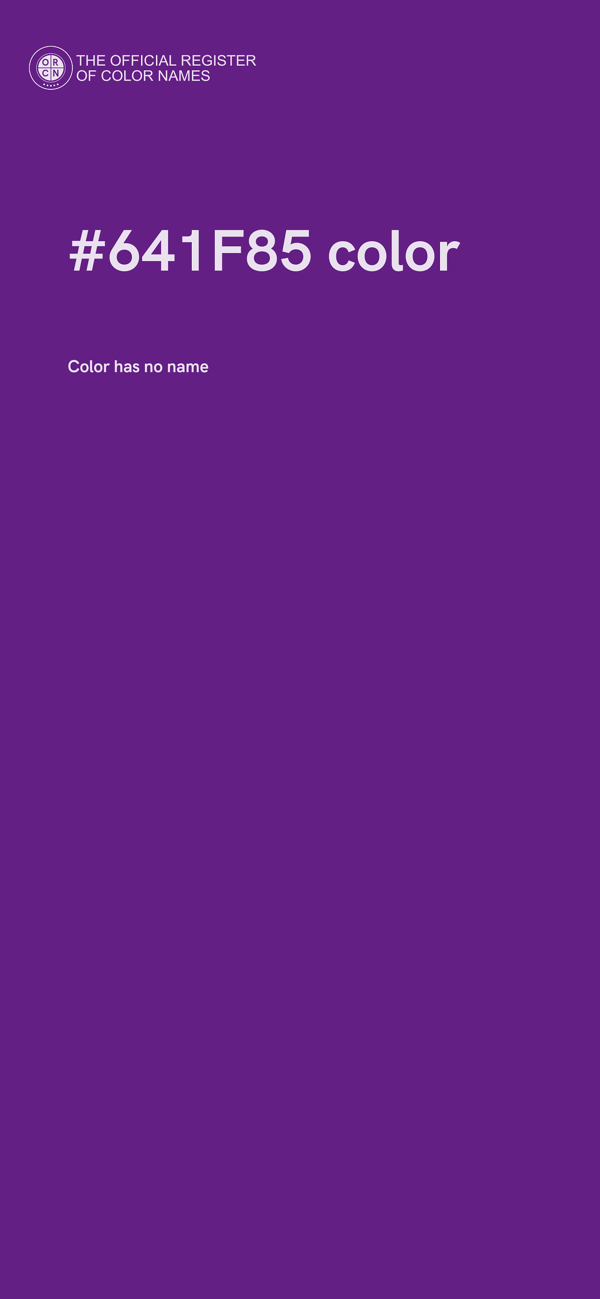 The digital color HEX #641F85 belongs to the Violet Color Family featuring High Saturation (Saturation Family) and Neutral (Brightness Family).