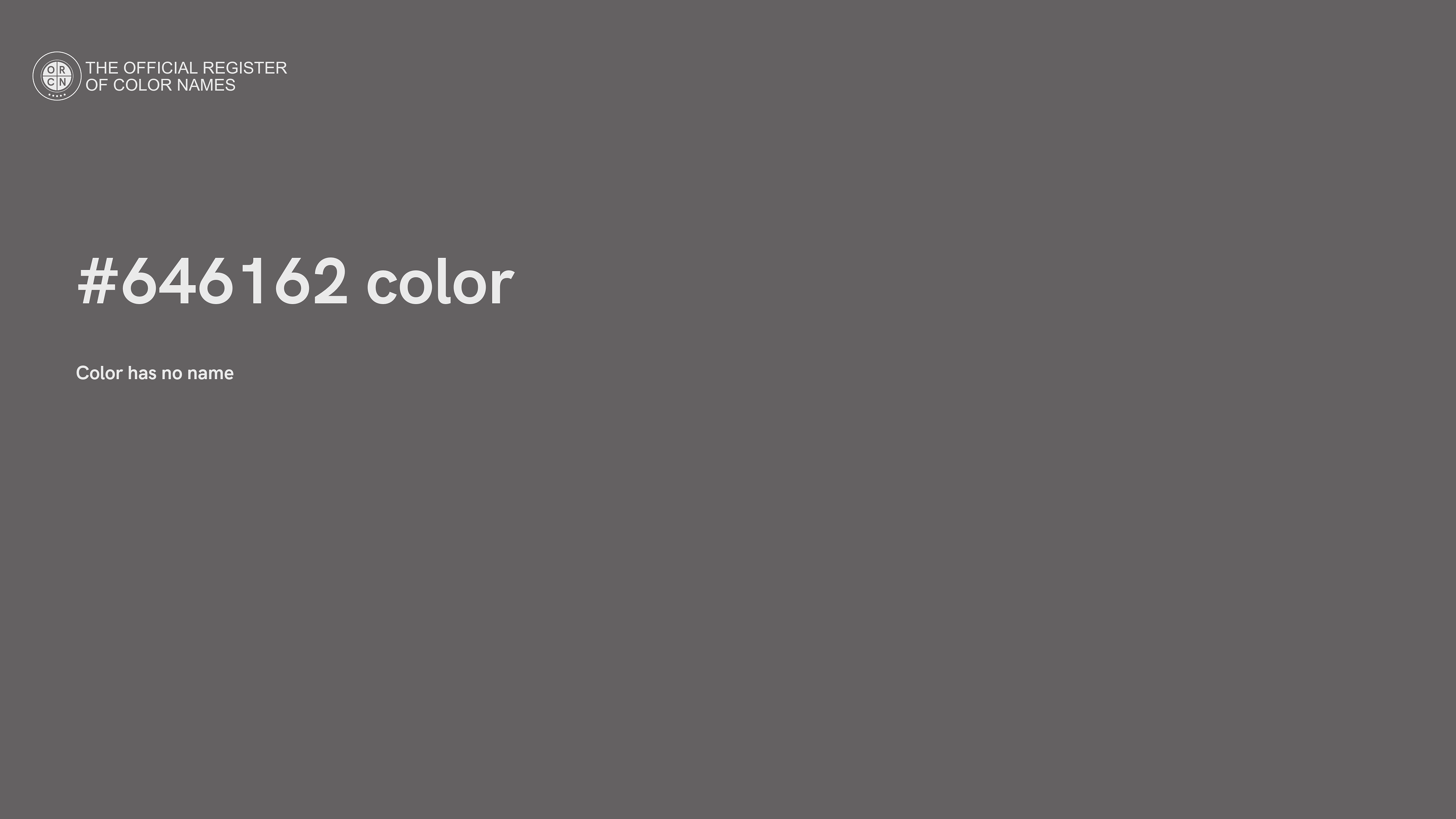 For printing in non digital world, #646162 is represented in CMYK as 0 Cyan, 1 Magenta, 1 Yellow, and 61 Black (Key) (C:0 M:1 Y:1 K:61).