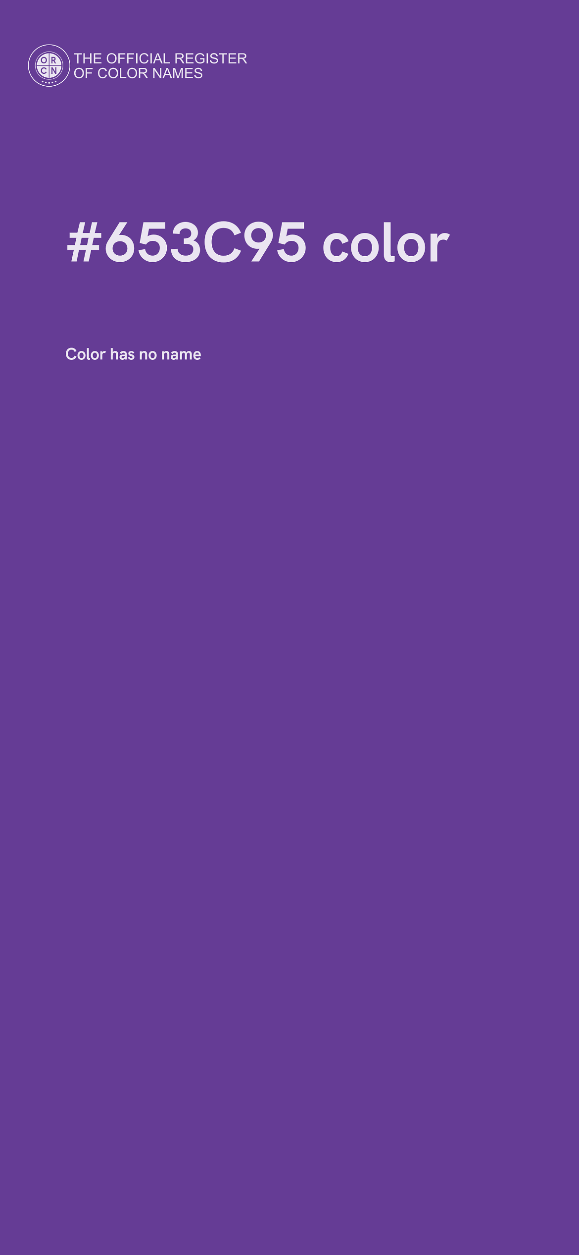 The digital color HEX #653C95 belongs to the Violet Color Family featuring Moderate Saturation (Saturation Family) and Light (Brightness Family).